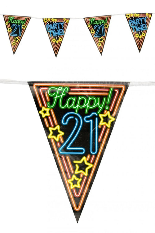 Vier je 21e verjaardag in stijl met deze neon vlaggenlijn van 10 meter! Perfect voor een knallend feest vol kleur en plezier. Laat de slingers wapperen! Kenmerken Neon kleuren 10 meter lang Ideaal voor 21e verjaardagen Maak je feest compleet...