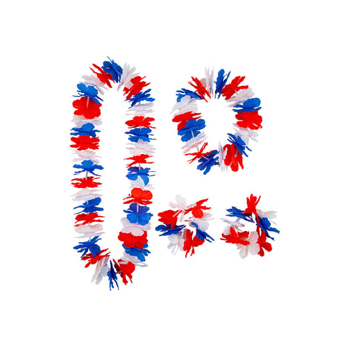 Voel je de tropische vibes al? Met deze Hawaii set in rood, wit en blauw ben jij klaar voor elk feestje! Perfect voor Koningsdag of een zomers themafeest. Kenmerken 4-delige set Inclusief halsketting Hoofdband en 2 armbanden Steel de show!...