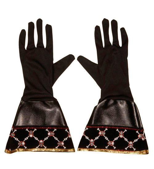 Prachtige handschoenen voor bij jouw piratenkostuum Mooie zwarte piratenhandschoenen met een in goudkleur opgedrukte doodskopjes. Deze piraten handschoen maakt jouw piraten outfit voor carnaval helemaal compleet. Naast deze piraten handschoenen zijn er nog tal van anderen piraten accessoires voor carnaval...