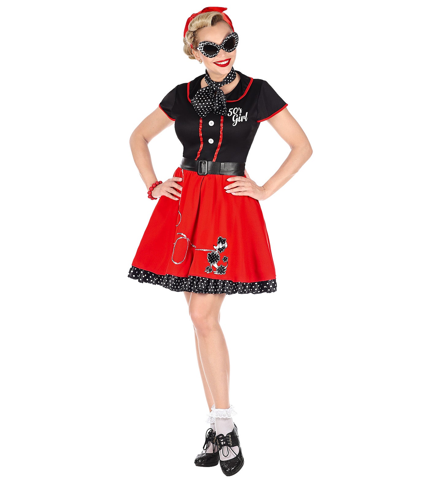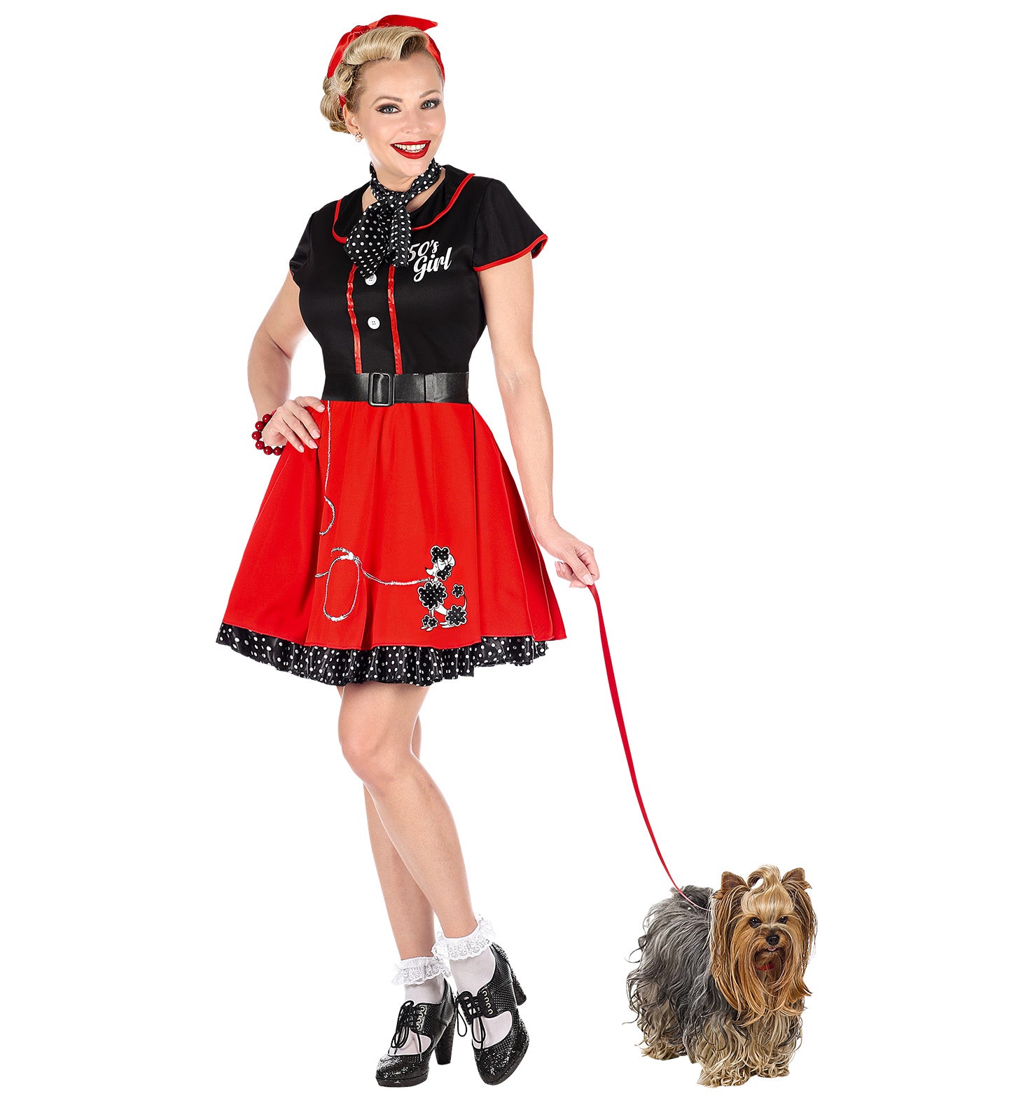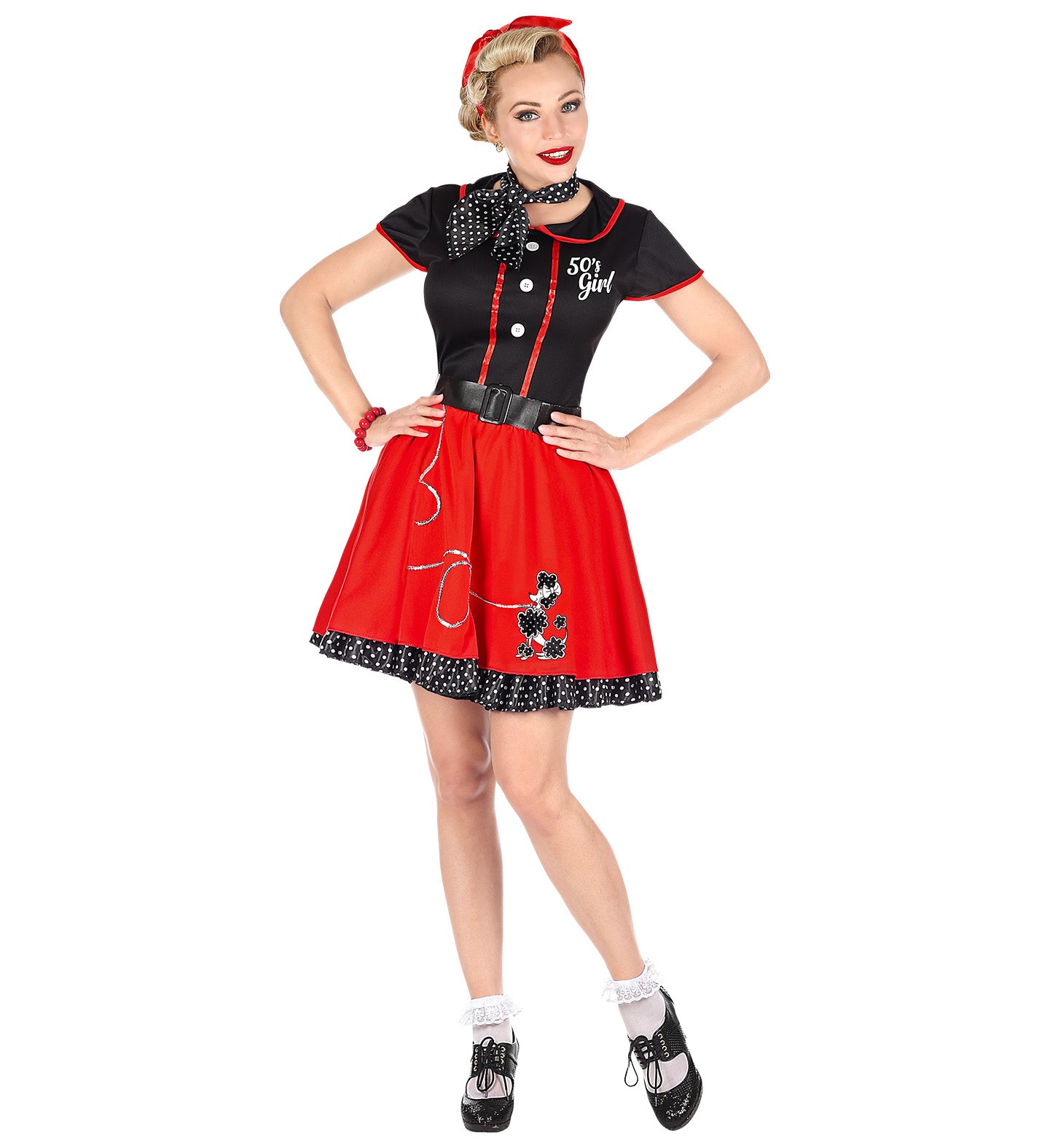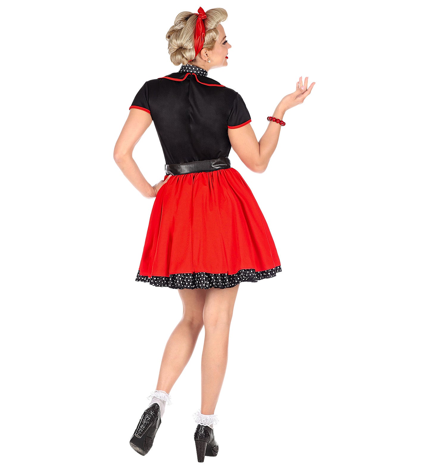 Stap terug in de tijd met deze swingende jaren 50 jurk in rood en zwart! Perfect voor een rock-'n-roll feestje... En savoir plus