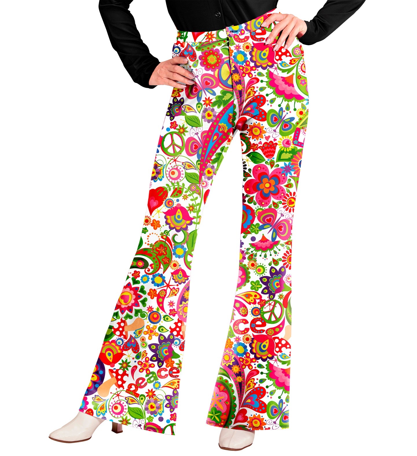 Jaren 70 broek peace party dames