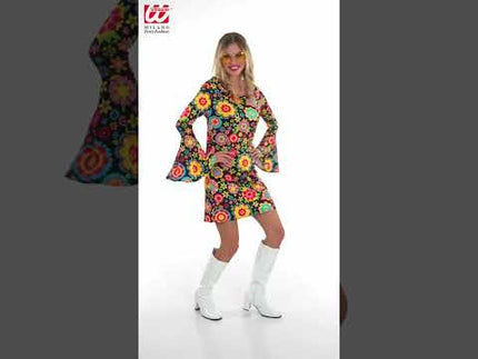 Stap in de tijdmachine en swing de dansvloer op met deze kleurrijke Jaren 70 jurk bloemenfeest! Perfect voor elke retro... En savoir plus