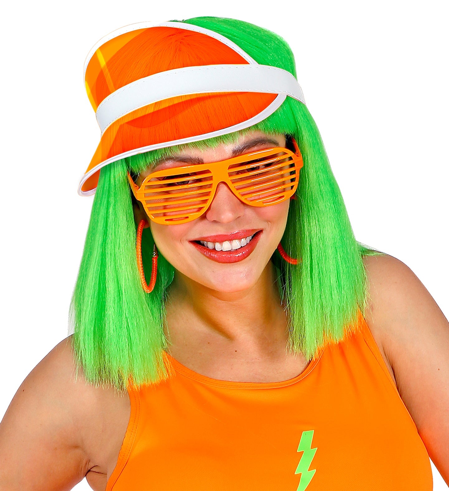 Ga terug naar de jaren 80 met deze knallende oranje zonneklep! Perfect voor elk feest, festival of gewoon een zonnige... En savoir plus