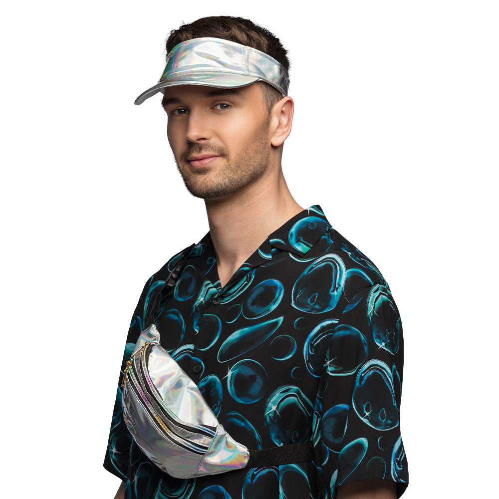 Met deze holografische accessoireset ben je helemaal klaar voor een dag vol muziek, dans en plezier. De zonneklep beschermt je tegen de zon terwijl je geniet van je favoriete artiesten, en het heuptasje biedt voldoende ruimte voor al je essentials. Geen gedoe meer met grote tassen of rugzakken; je hebt alles wat je nodig hebt binnen handbereik. Bovendien is de zilveren kleur een echte blikvanger, waardoor je gegarandeerd complimenten zult ontvangen van andere feestgangers.