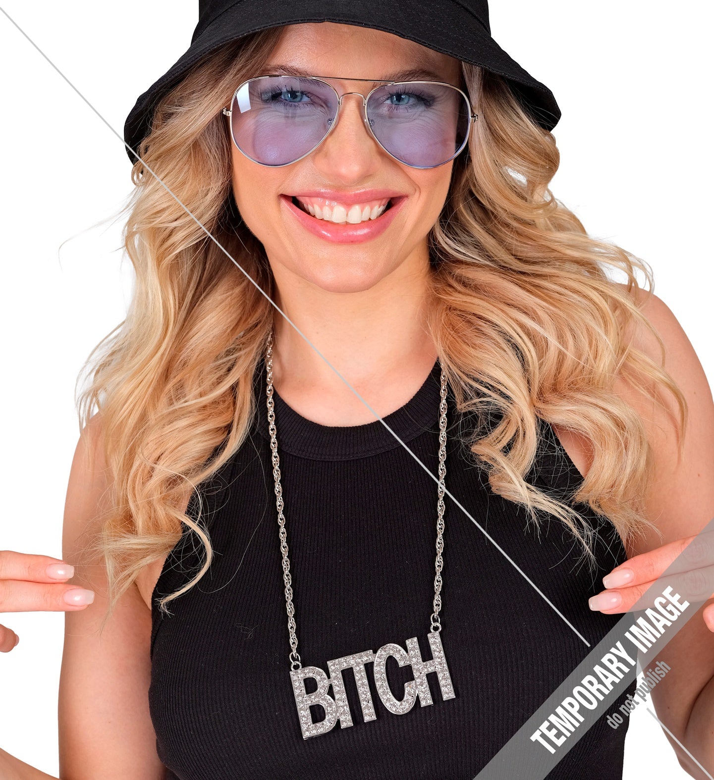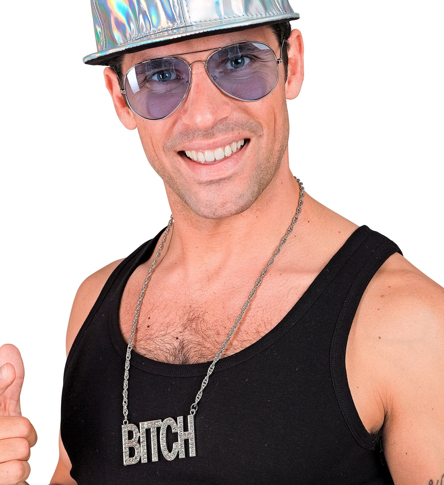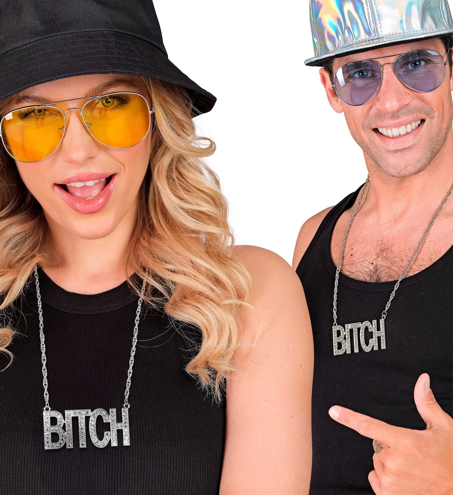 Steel de show met deze zilveren "bitch" ketting! Perfect voor een avondje uit of carnaval. Laat je innerlijke diva stralen... En savoir plus
