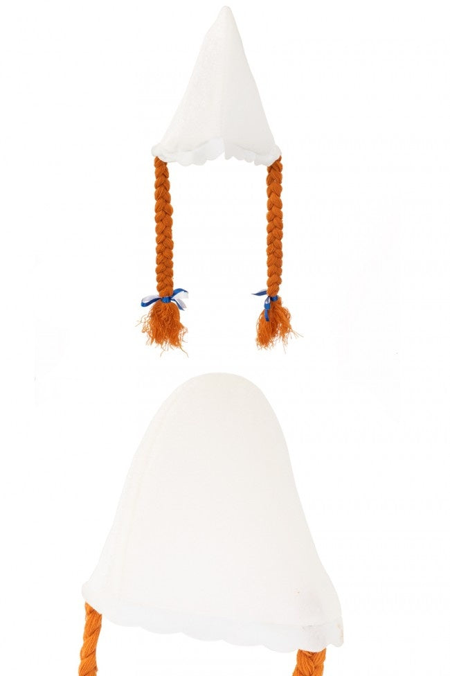 Stap in de klompen van een echte boerin met deze boerinnenkap! Oranje vlechten en schattige strikjes maken jouw outfit compleet.... En savoir plus