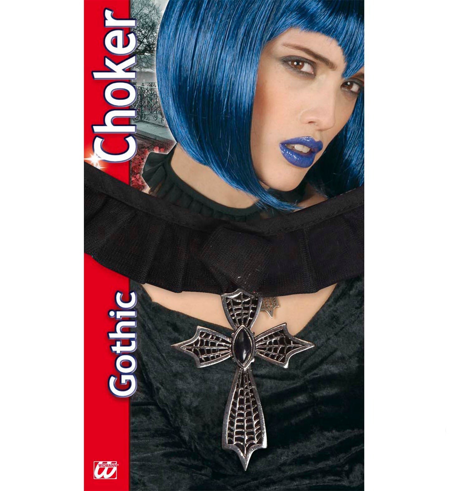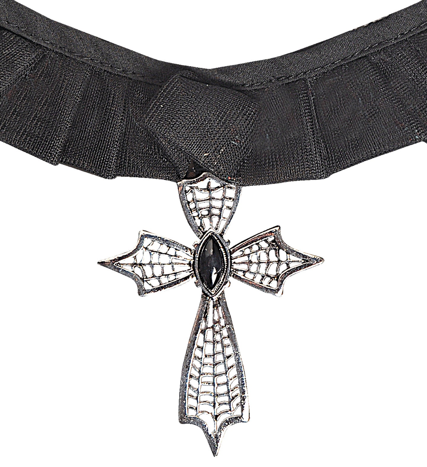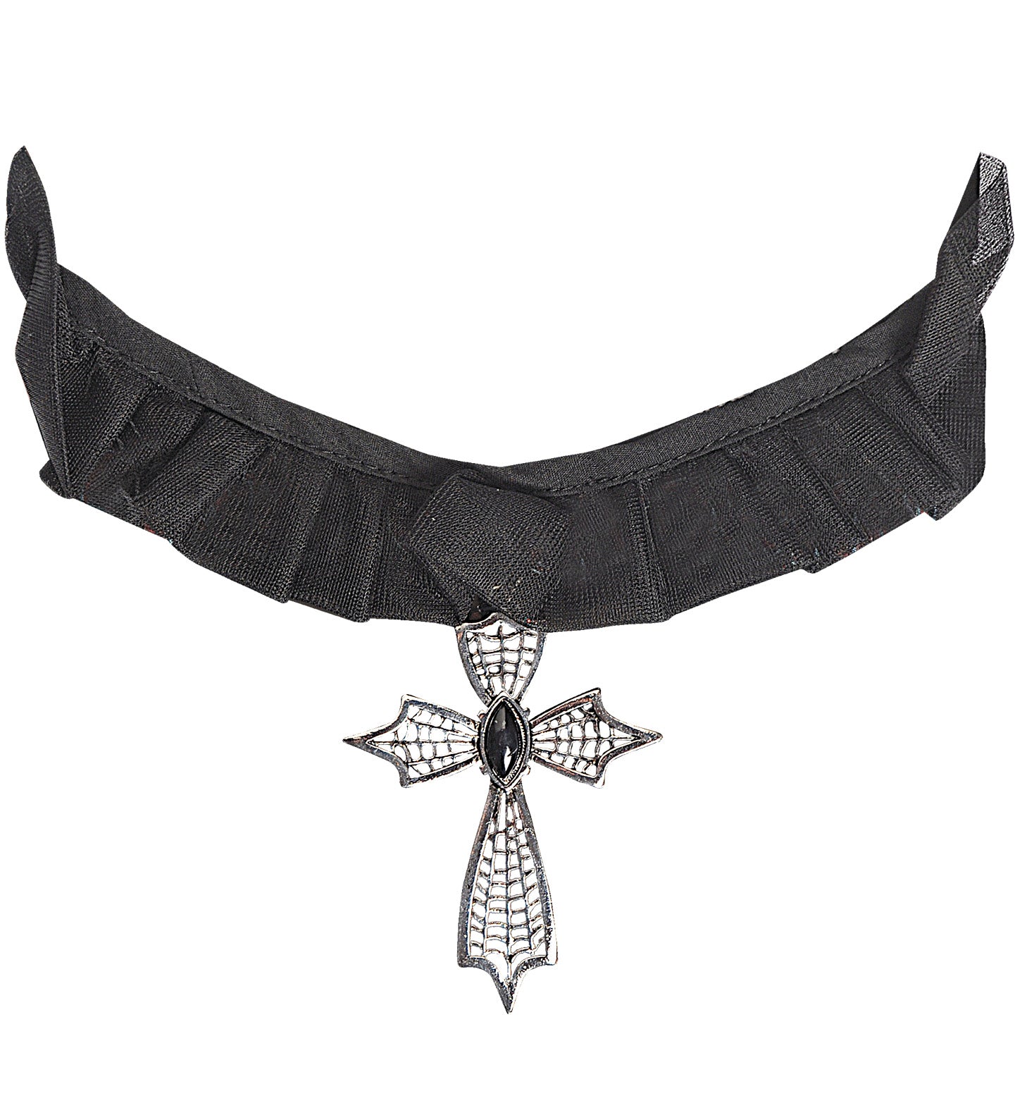 Choker met zwarte gemsteen Medaillon kruis met zwarte gemsteen. Deze choker wordt veel gebruikt bij Halloweenkleding. De sieraden voor Halloween... En savoir plus
