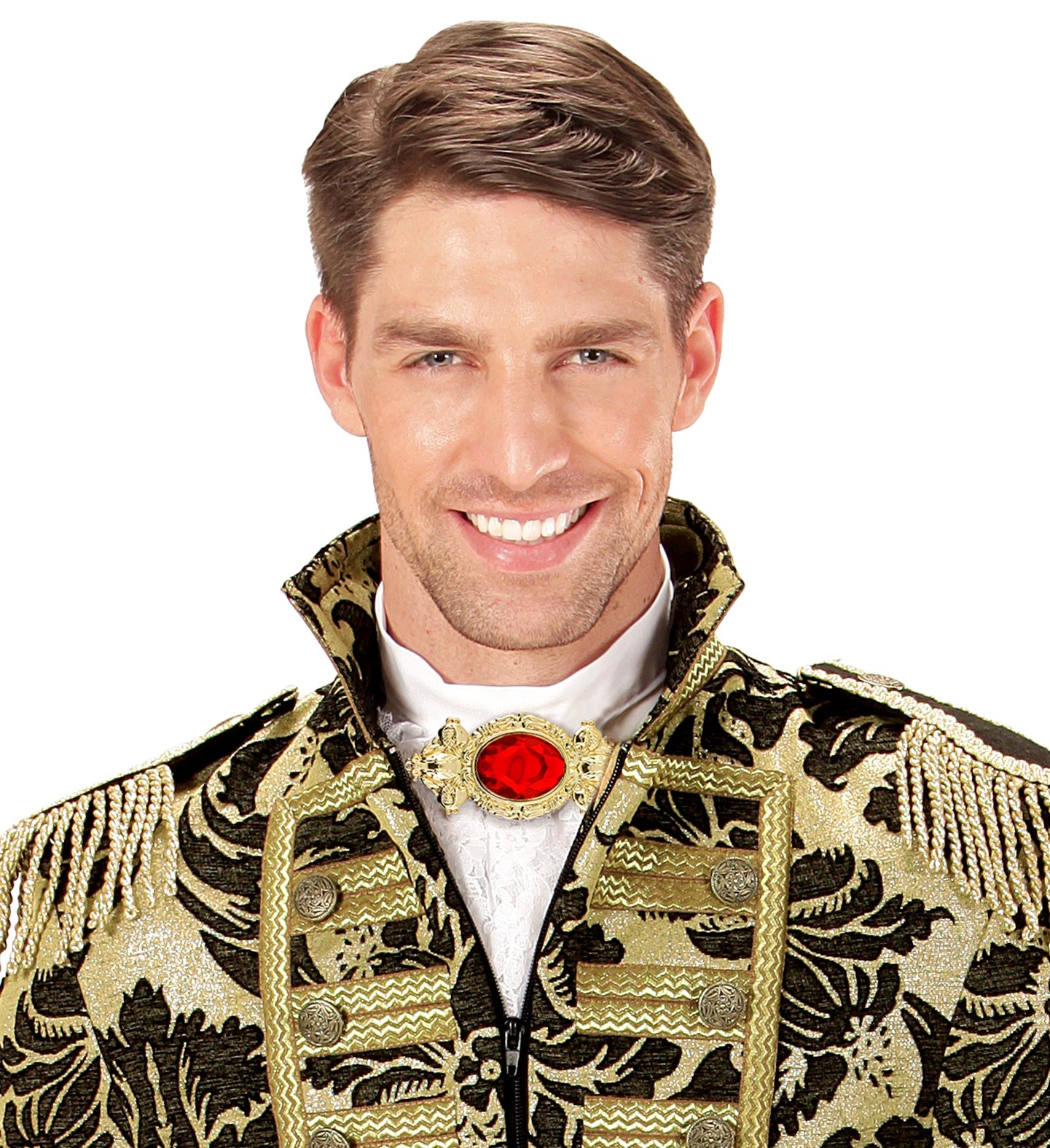 Voeg een vleugje koninklijke flair toe aan je carnavalsoutfit met de Broche Rode Steen Maxi! Perfect voor middeleeuwse en koningskostuums.... En savoir plus