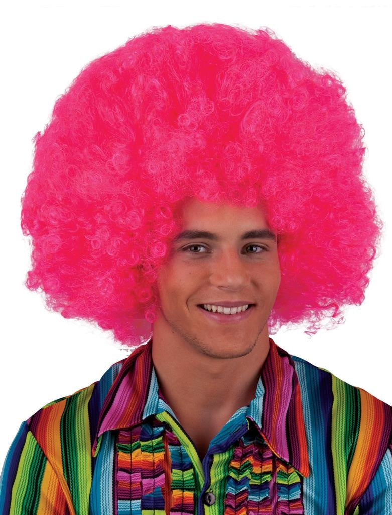Mega afro pruik Nikki in roze/fuchsia