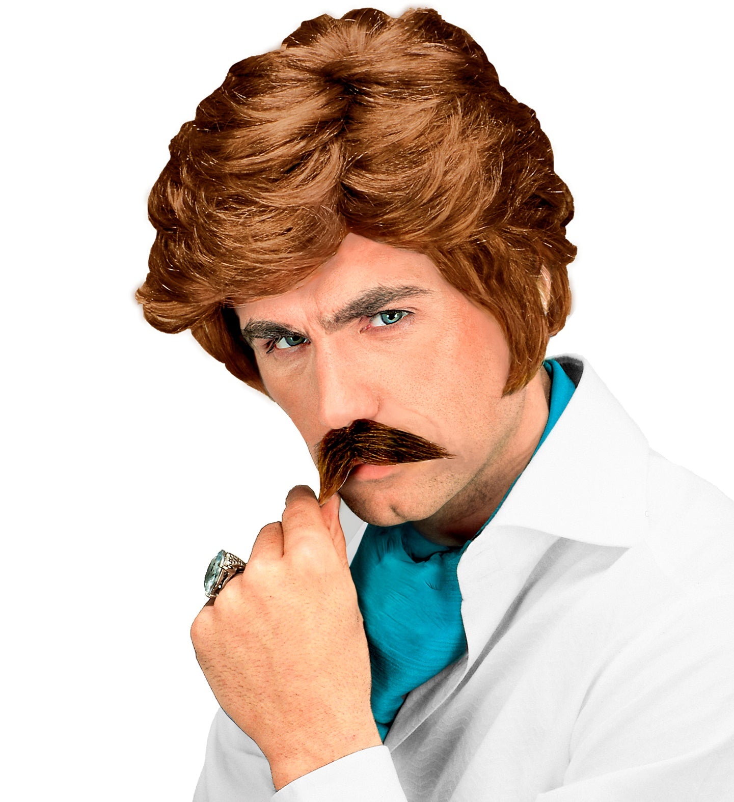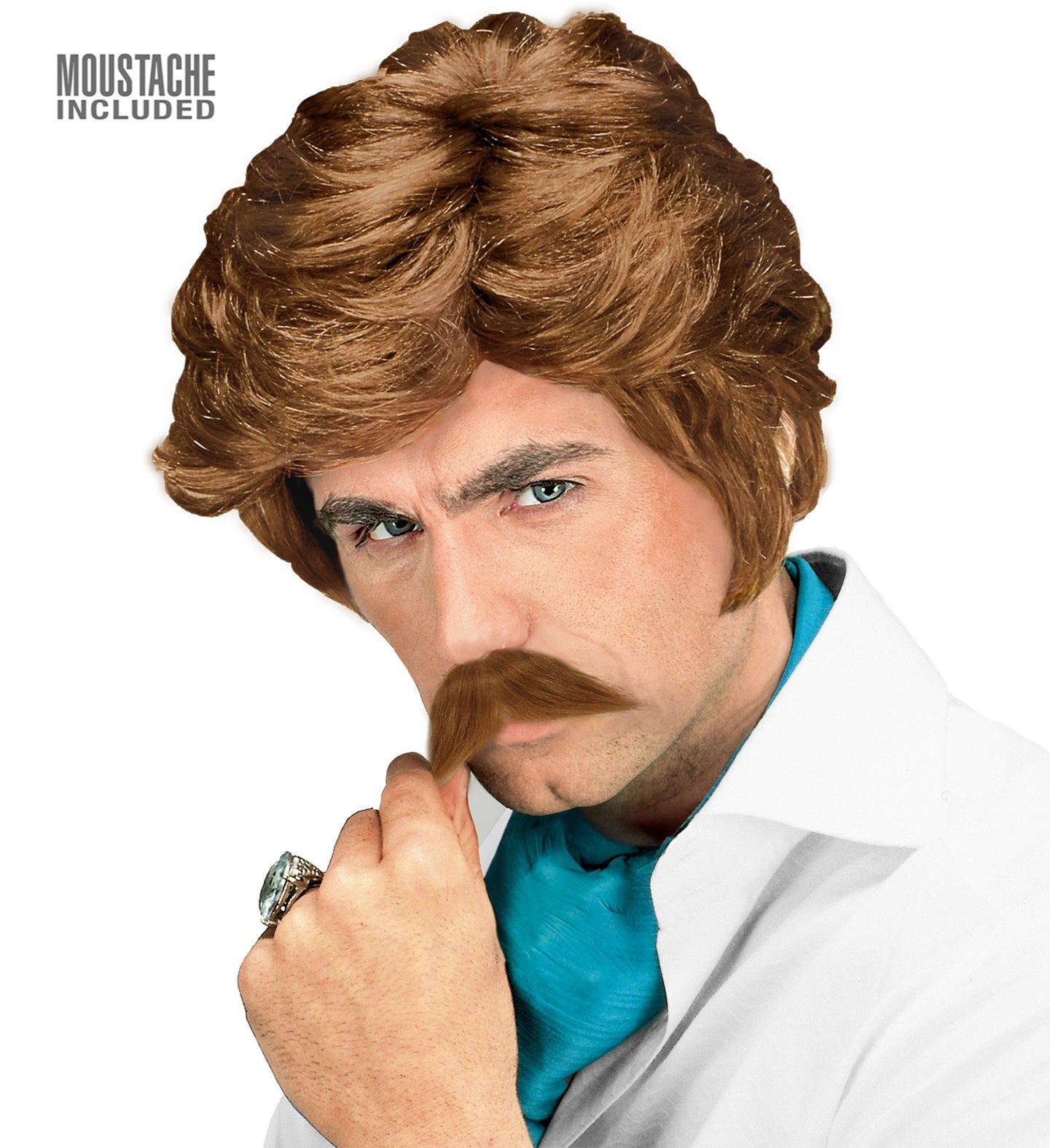 Playboy pruik met snor blond