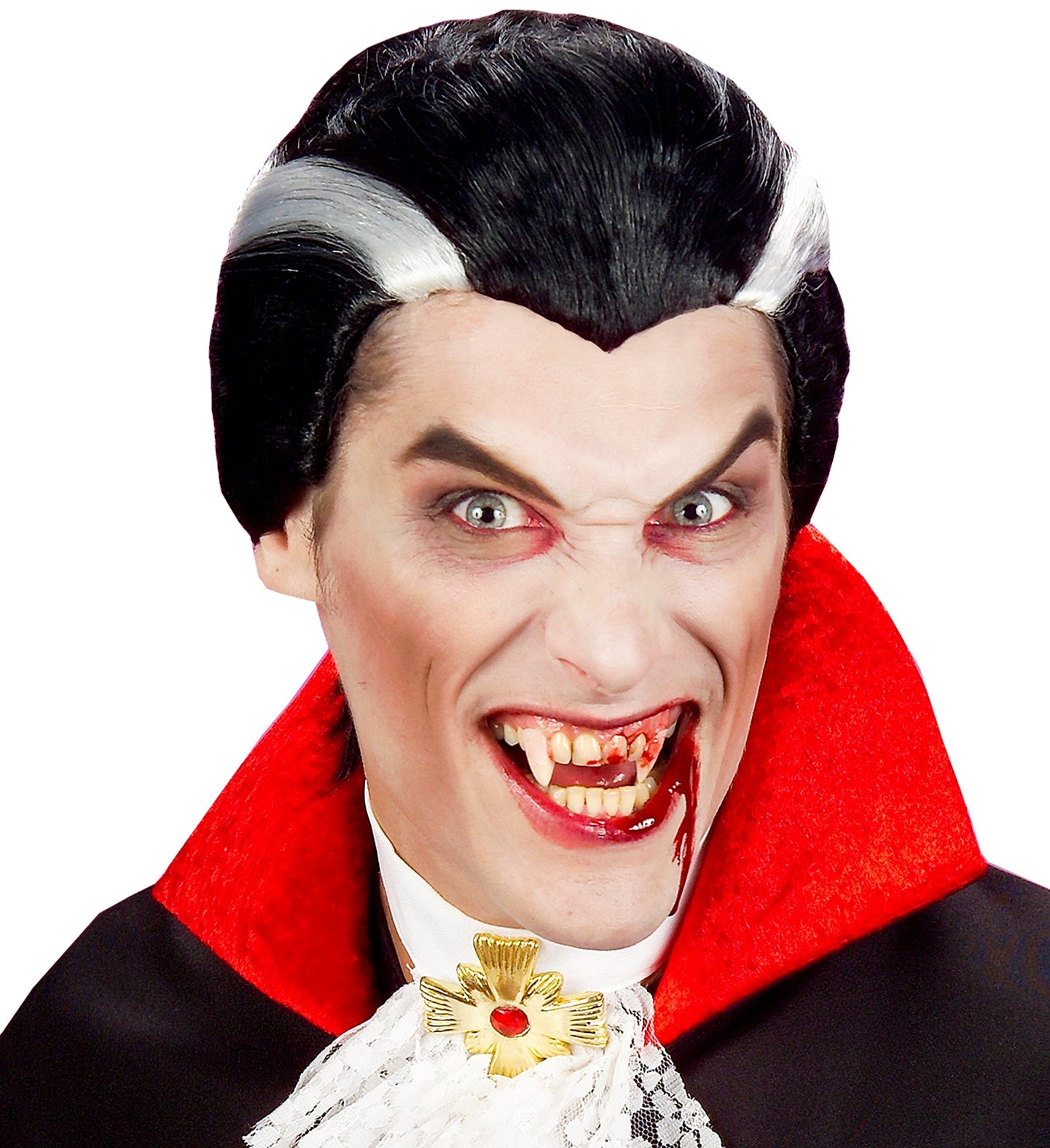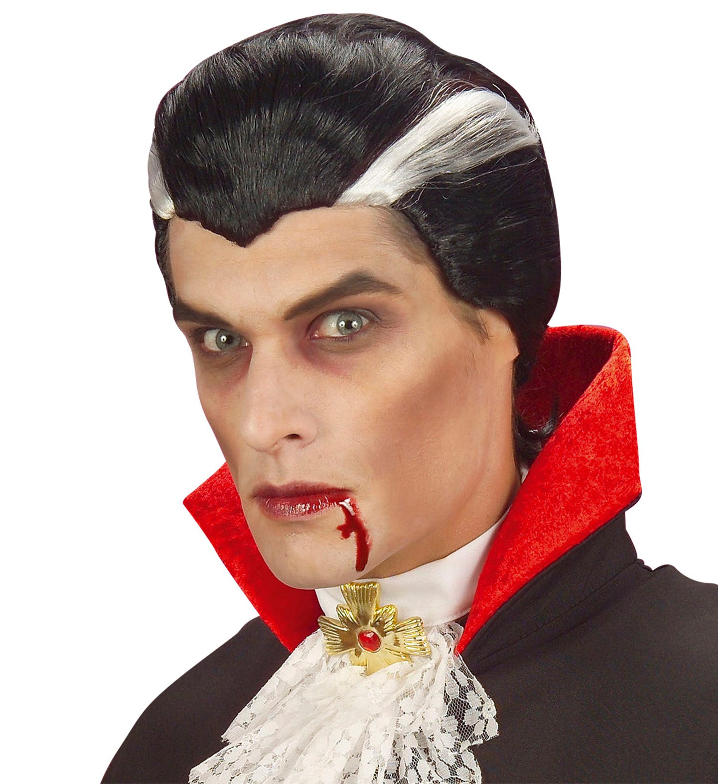 Vampier pruik zwart met witte strepen