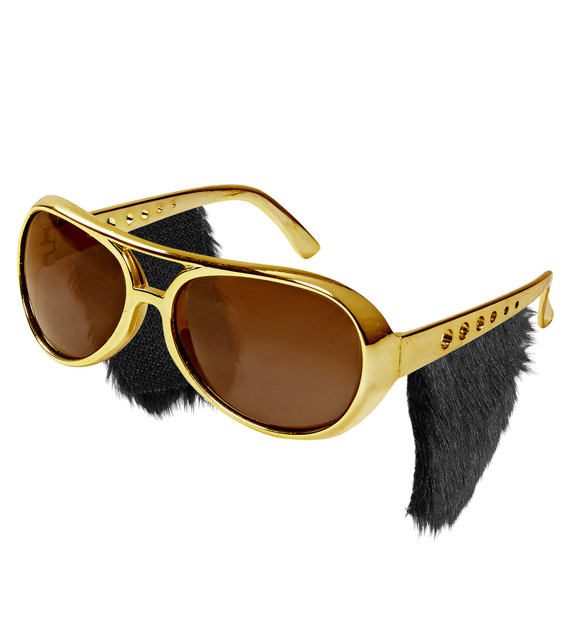 Rock 'n roll bril Elvis goud met bakkebaarden