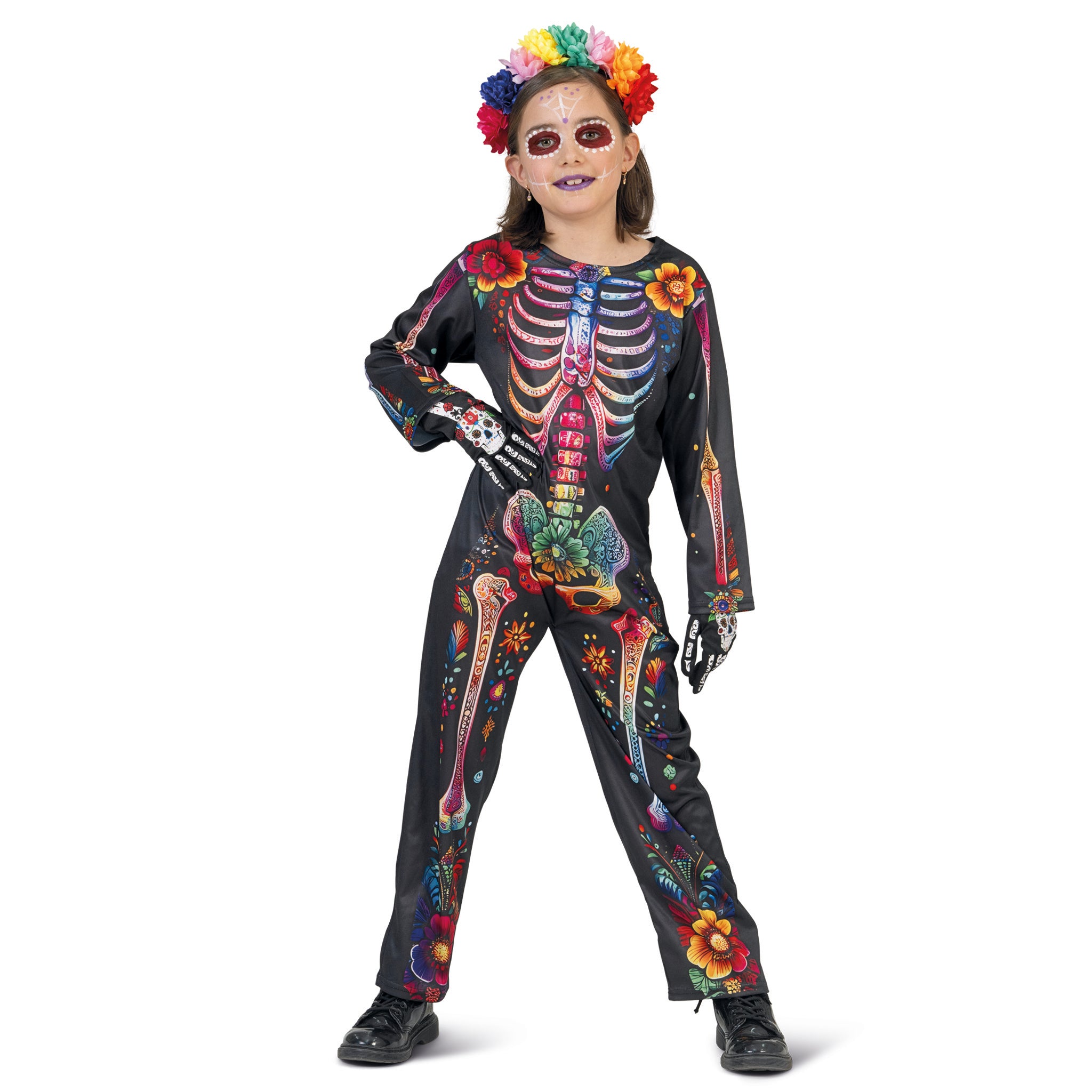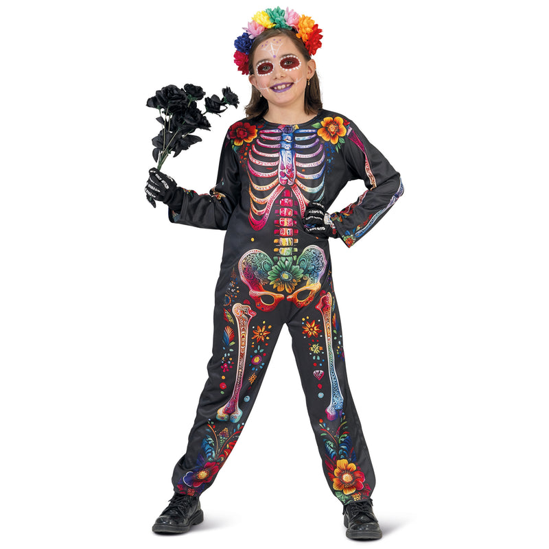 Combinaison squelette fleurie enfant jour de la mort