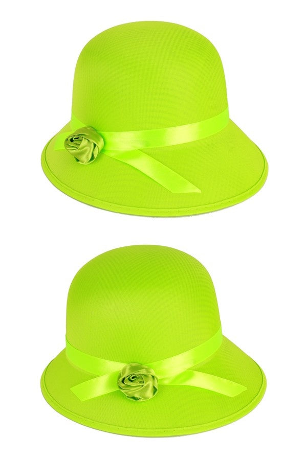 Maak je outfit compleet met deze stijlvolle dameshoed in neon groen, versierd met een charmant roosje. Perfect voor elk feest!... En savoir plus