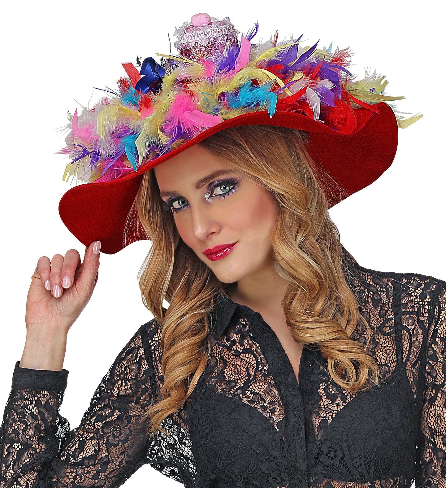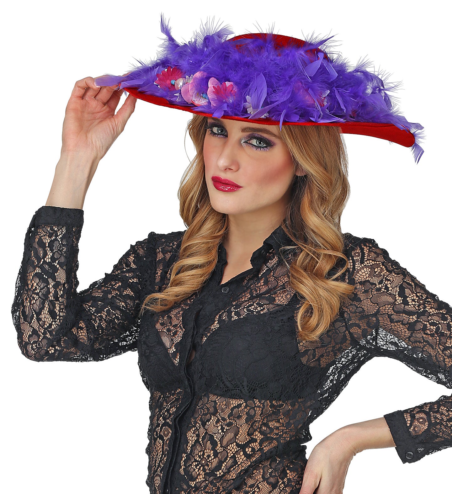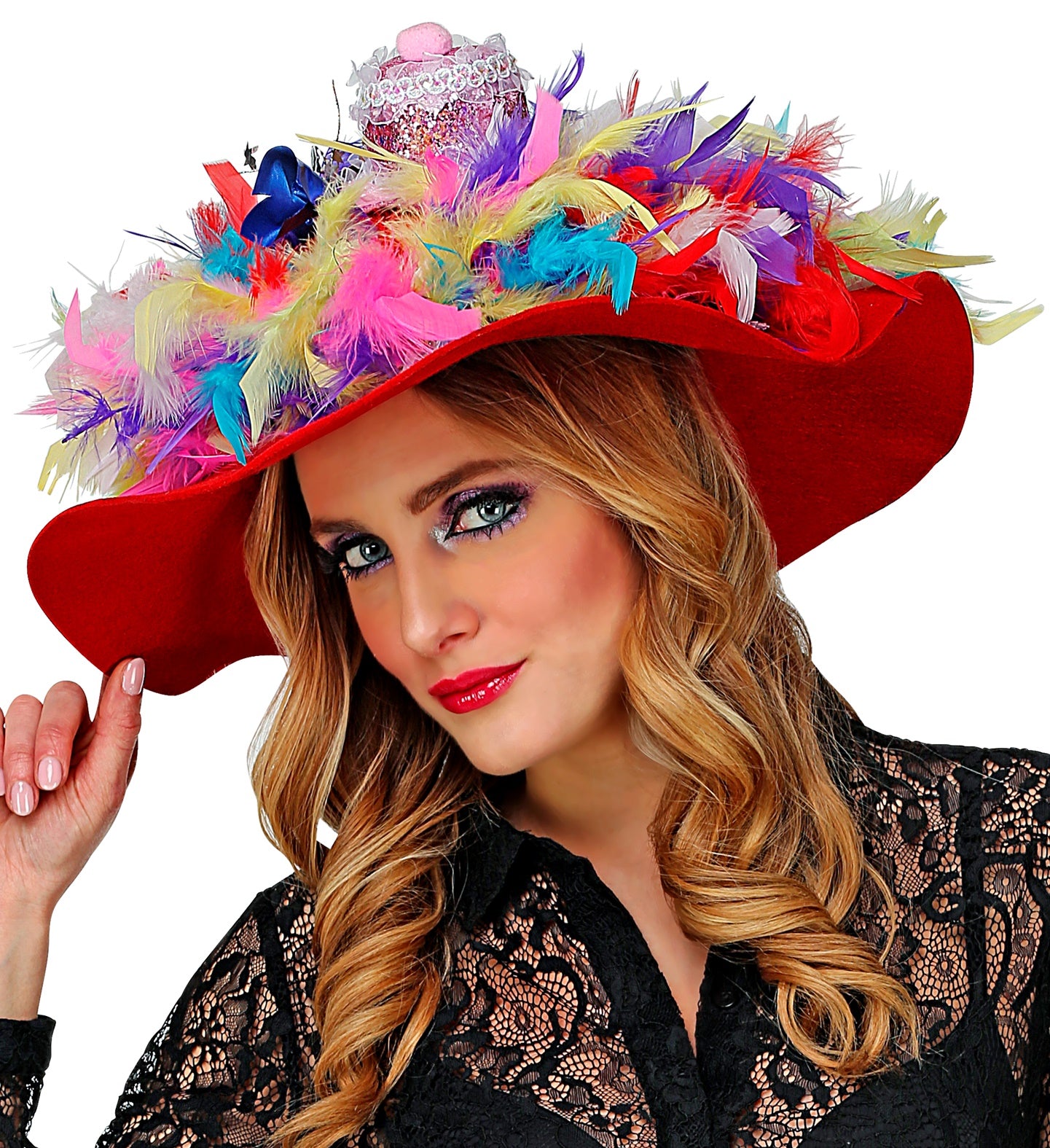 Maak je outfit compleet met deze prachtige rode dames flaphoed! Perfect voor elk feest en een echte blikvanger.