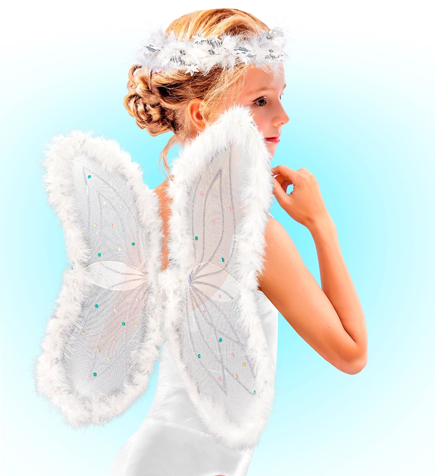 Engelen verkleedsetje voor kerstmis Dit zijn engelen verkleedsetjes bestaande uit vleugeltjes en een aureooltje, die speciaal in onze collectie zitten... En savoir plus