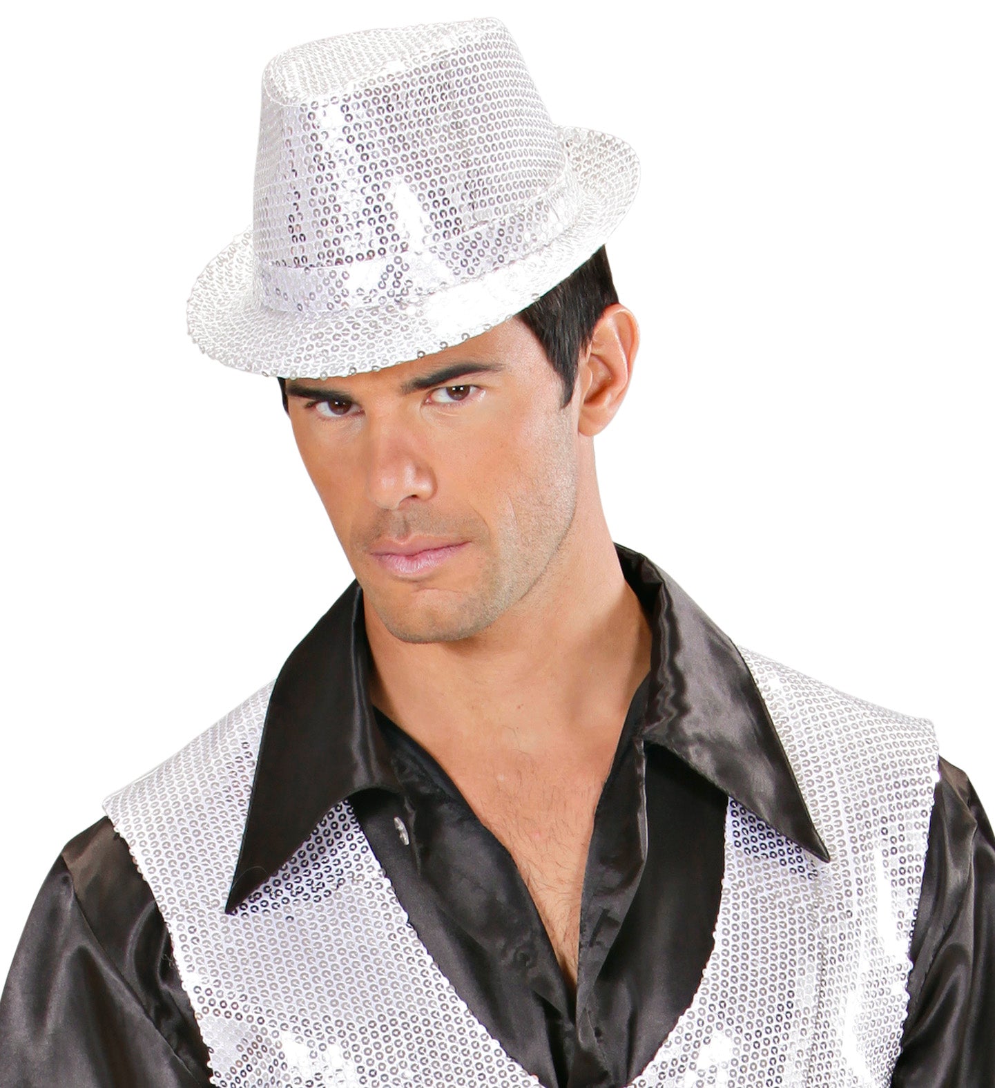 Glitter gleufhoed zilver pailletten