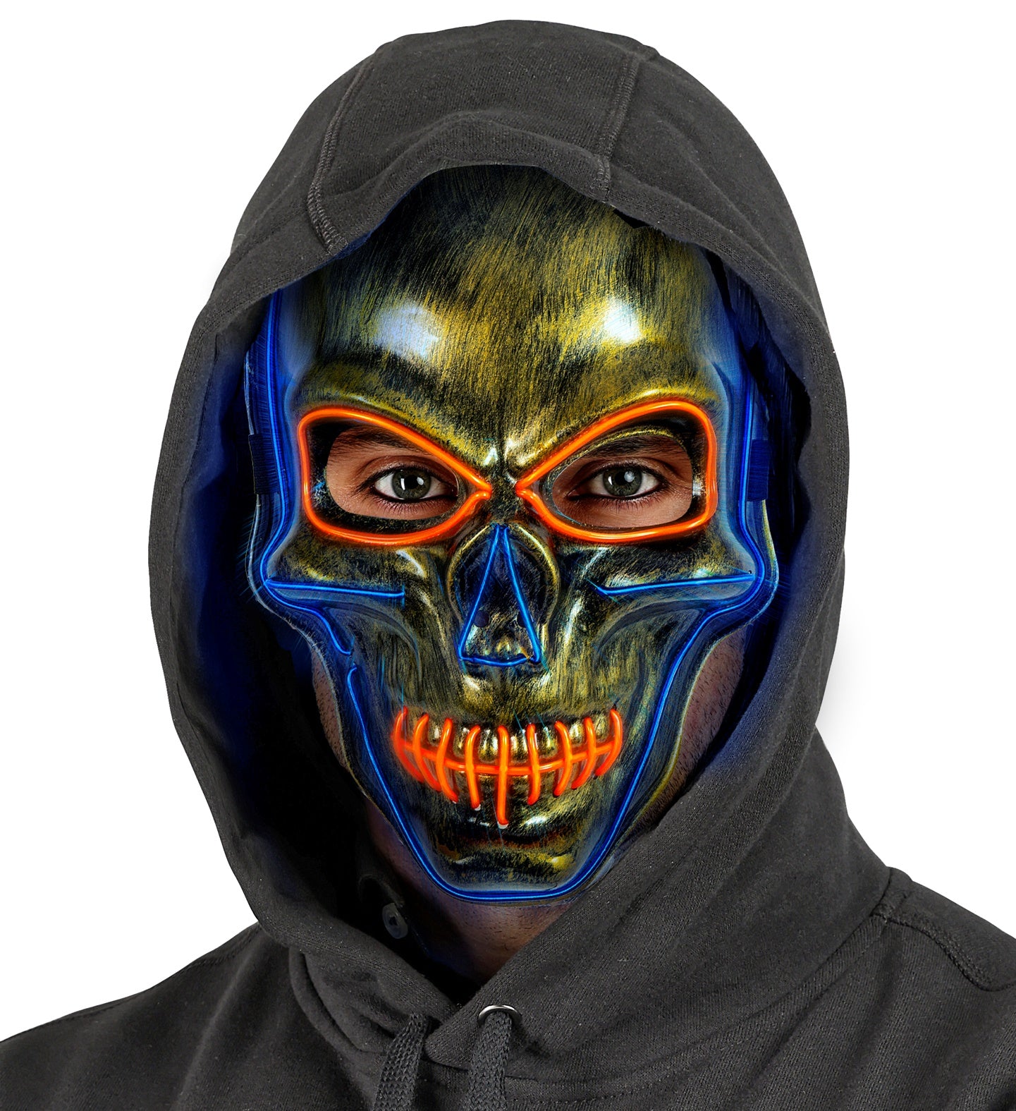 Gouden schedel masker met gekleurd ledlicht