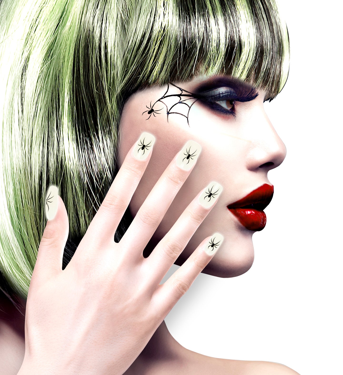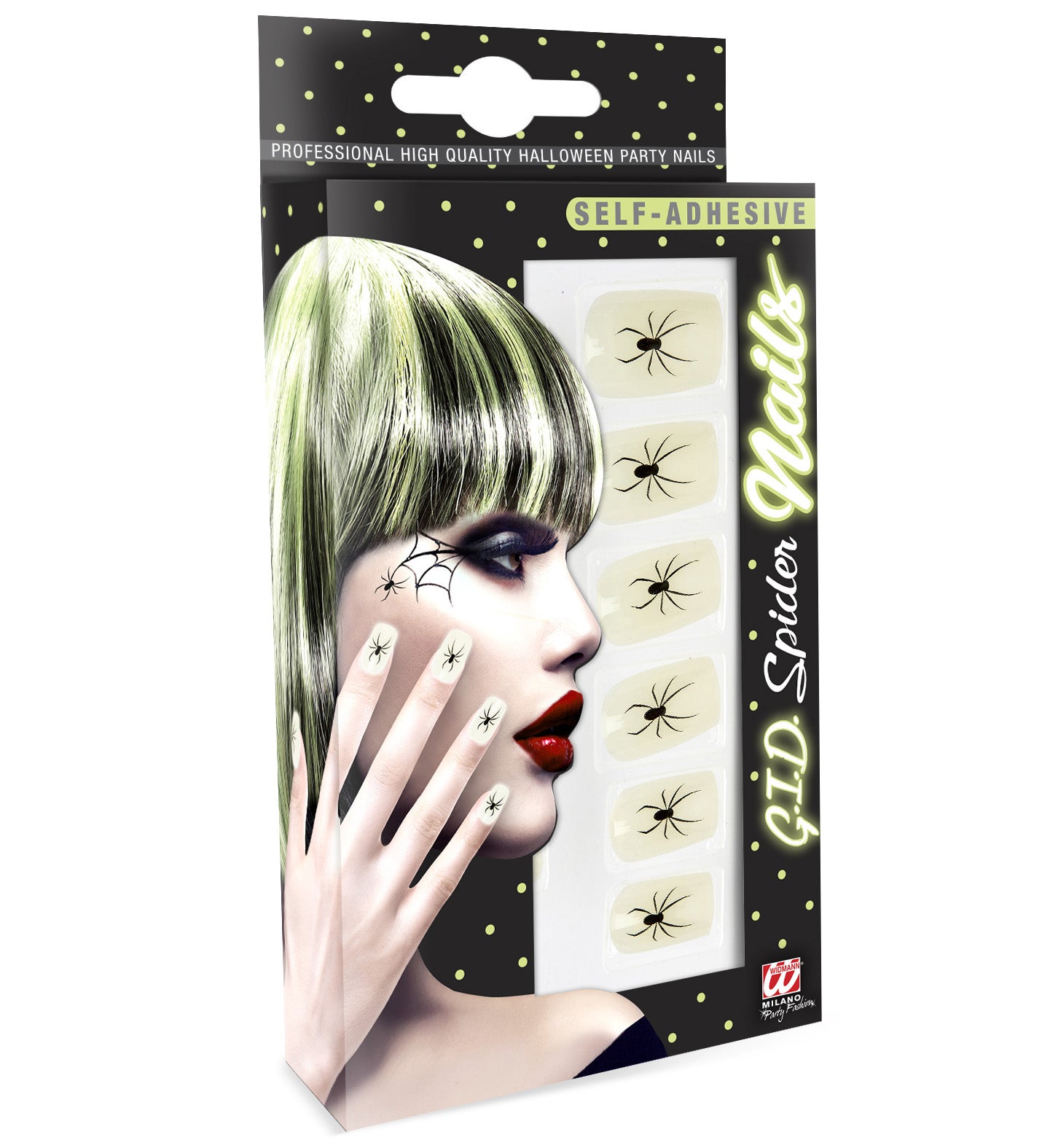 Verlicht je feestje met deze glow in the dark opplaknagels! Perfect voor een spookachtige look met spinnen die oplichten in... En savoir plus