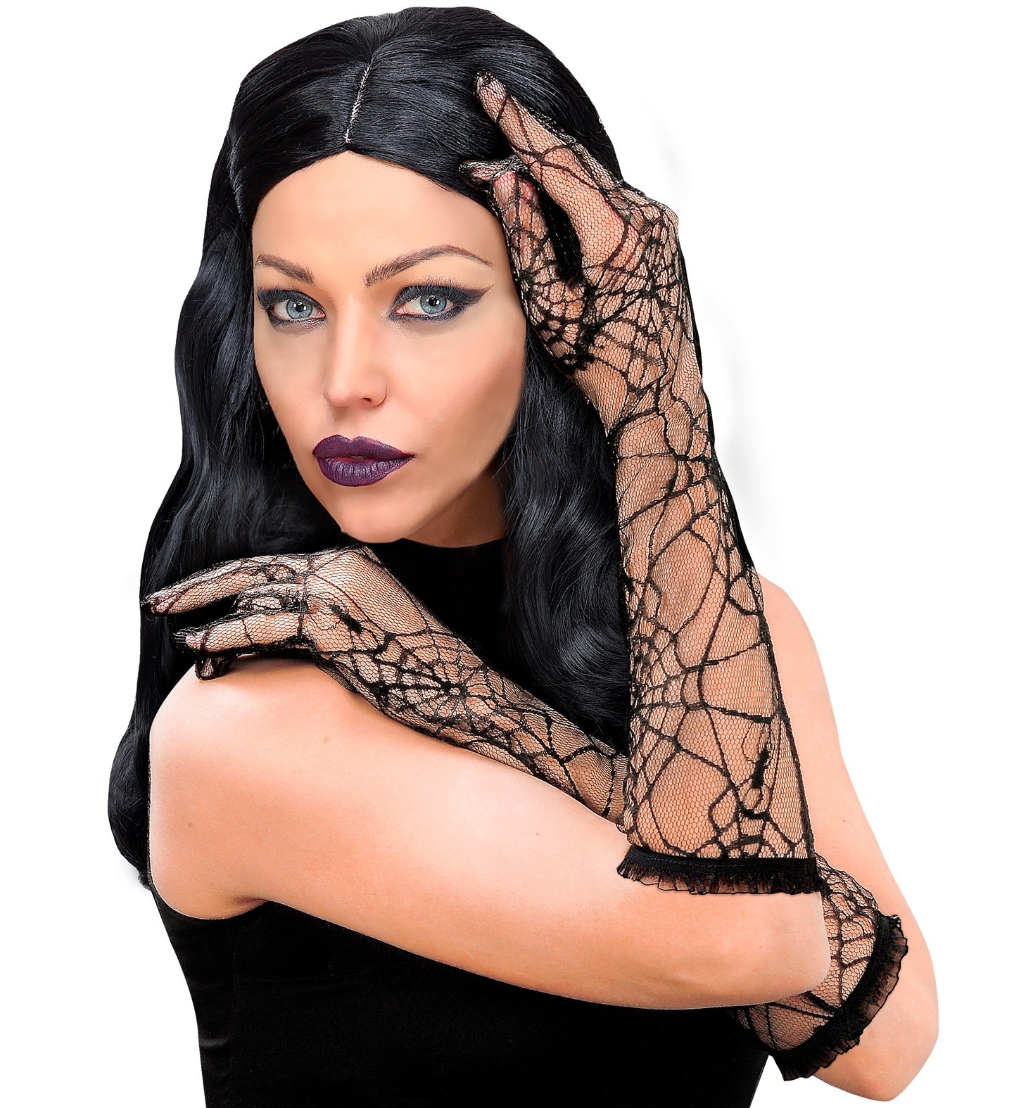 Spinnenweb handschoenen voor halloween Spinnenweb handschoenen voor bij jouw halloween heksenjurkje. Deze doorzichtige kanten handschoenen zijn lang en mooi gemaakt... En savoir plus