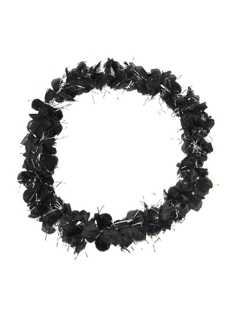 Steel de show met deze unieke bloemenkrans! De combinatie van zwarte bloemen en zilveren tinsel maakt je outfit onvergetelijk. Perfect... En savoir plus