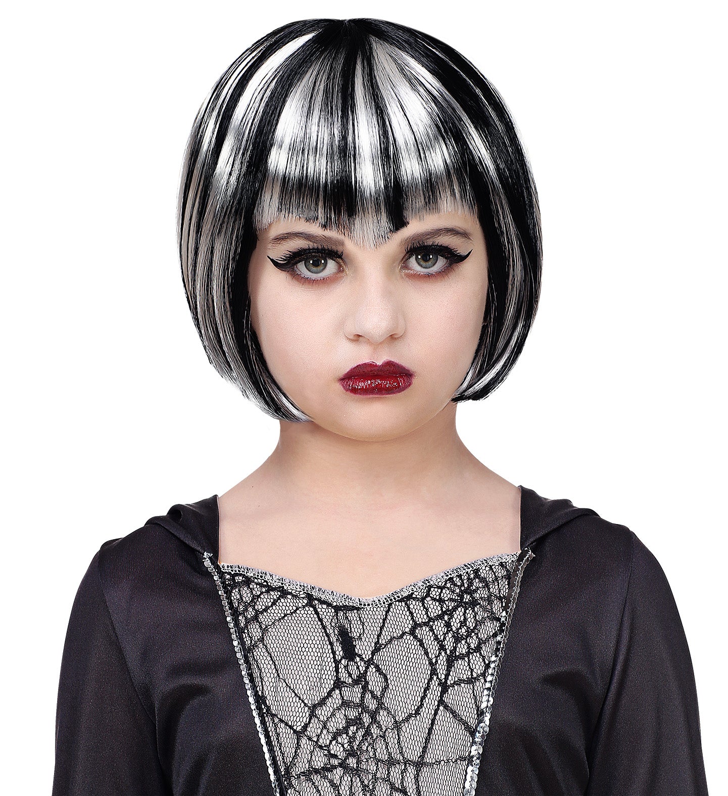 Transformeer je kleintje in een magische heks met deze zwart-witte pruik! Perfect voor Halloween of verkleedfeestjes. Laat de betovering beginnen!... En savoir plus