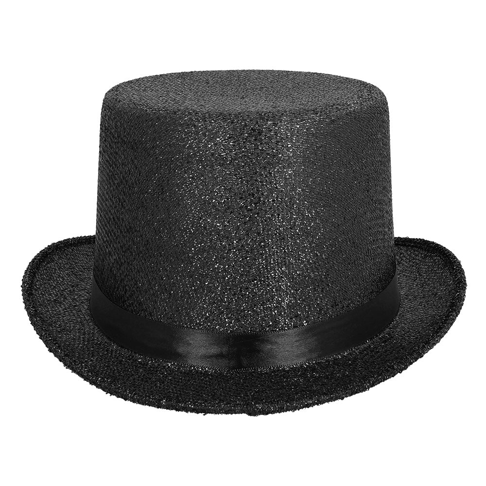 Glitter hoge hoed zwart lurex