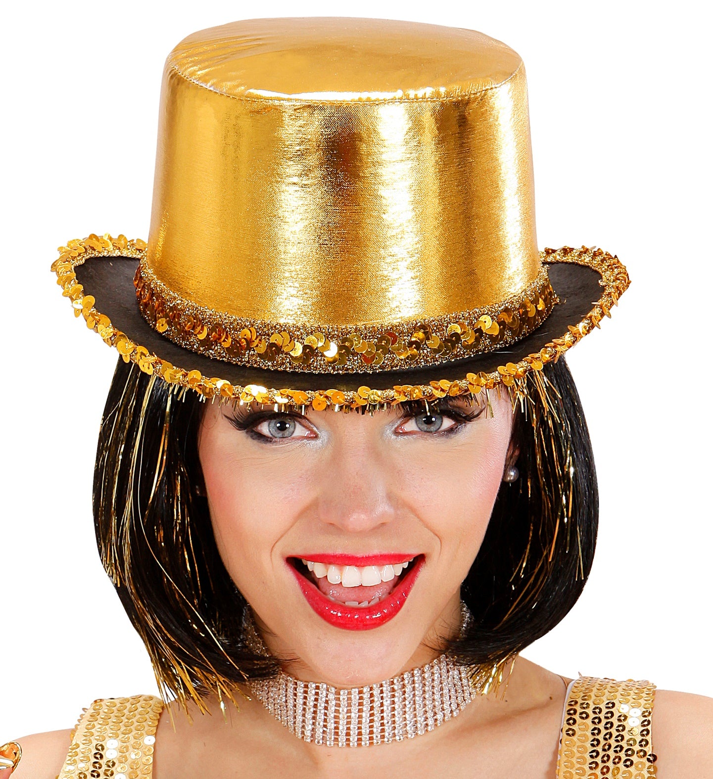 Hoge hoed goud met pailletten beslag