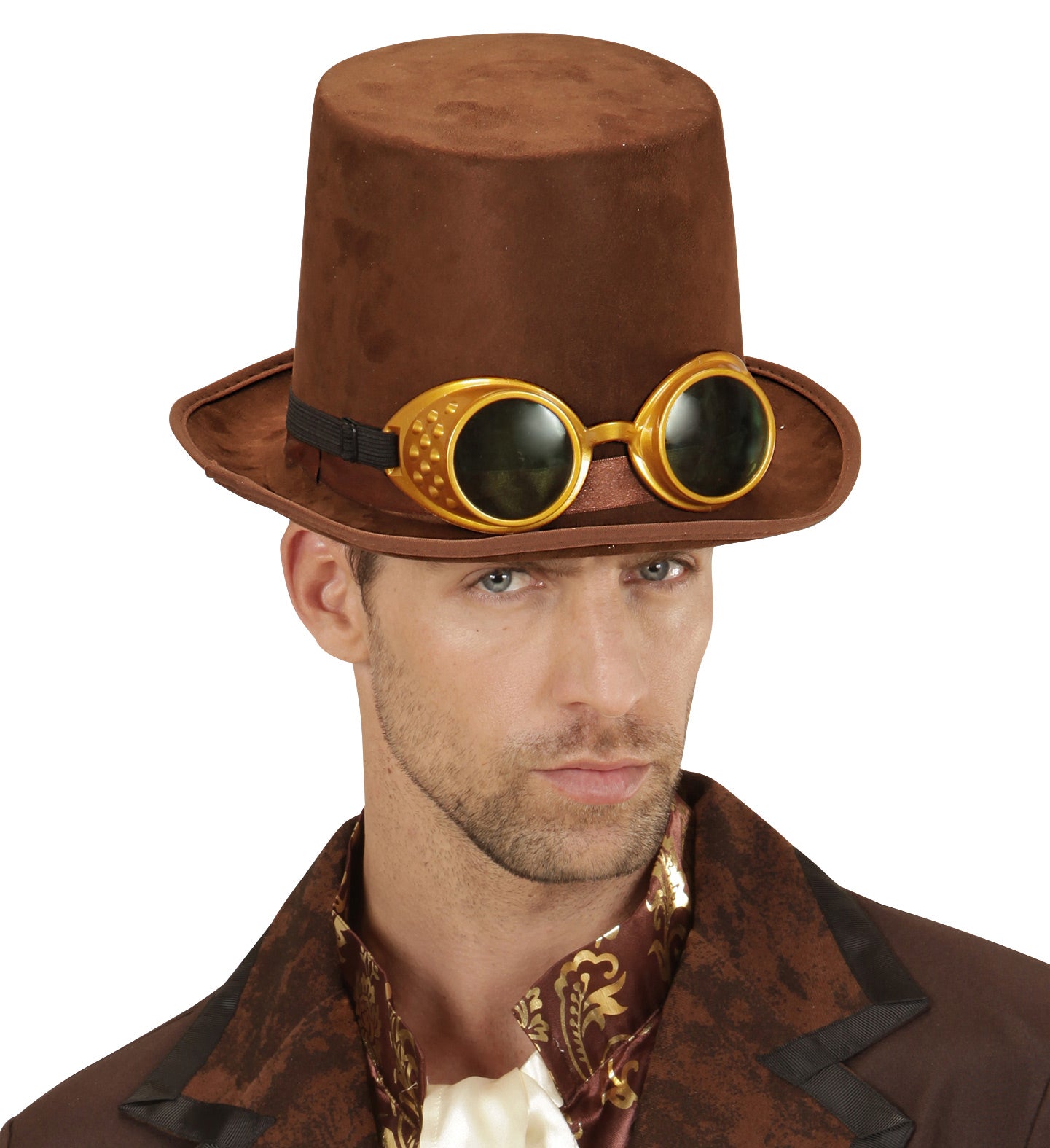 Stap in de wereld van avontuur met deze luxe bruine steampunk hoge hoed, compleet met een stoere stofbril. Perfect voor... En savoir plus
