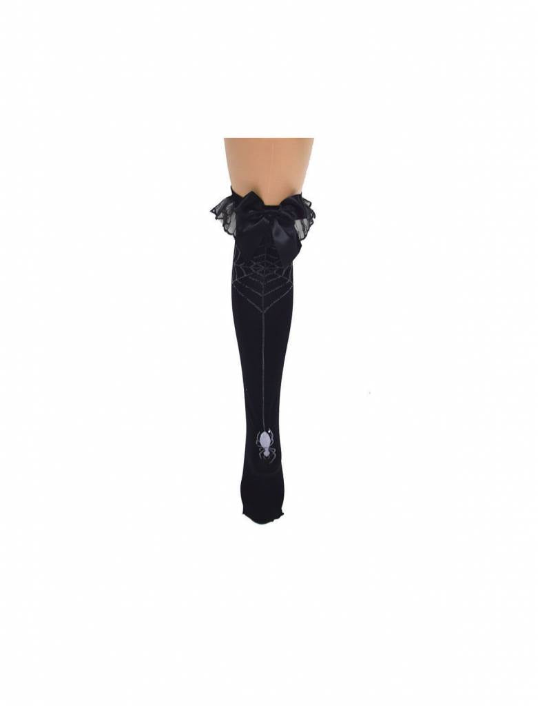 Hoge kousen zwart met spinnenweb