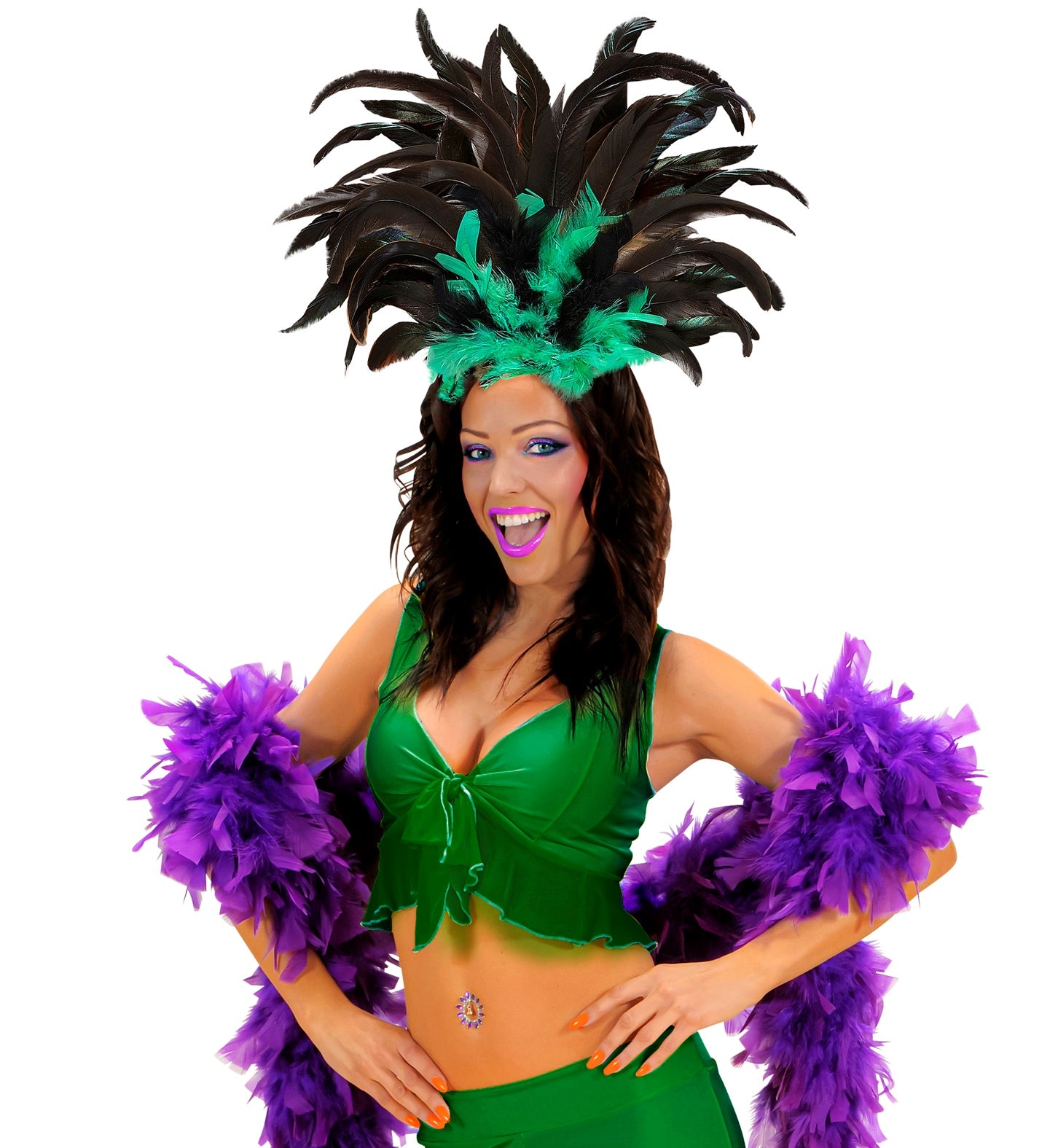 Voel de ritmes van Rio met de Hoofdband Copa Cabana! Deze zwart-groene veren maken je outfit onweerstaanbaar. Perfect voor carnaval... En savoir plus