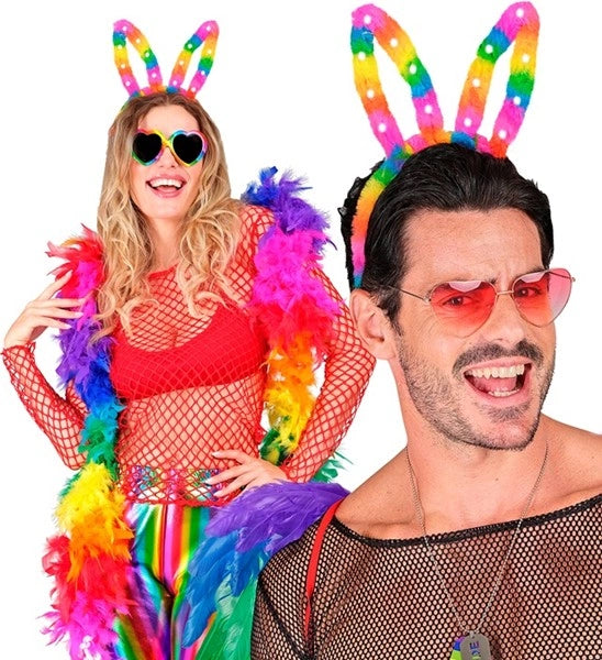 Hoofdband konijn regenboog met lampje Siem