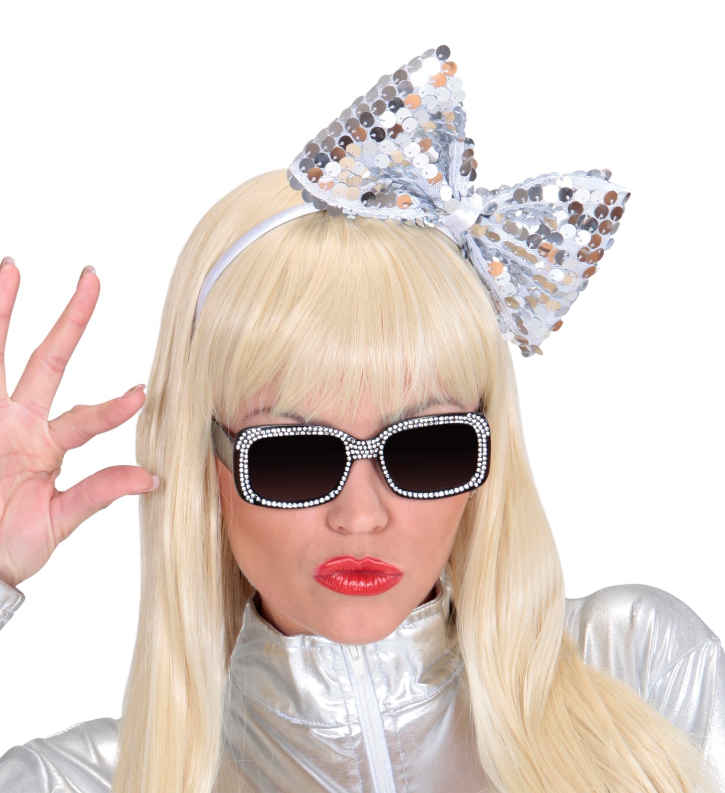 hoofdband met paillettenstrik zilver