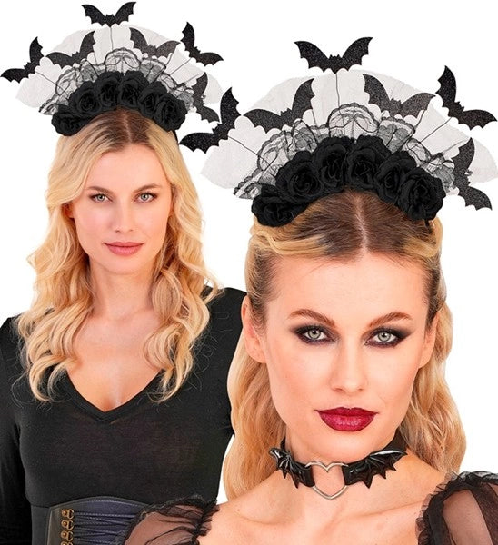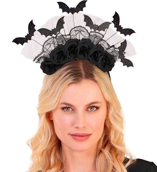 Hoofdband vleermuizen en zwarte rozen Mees