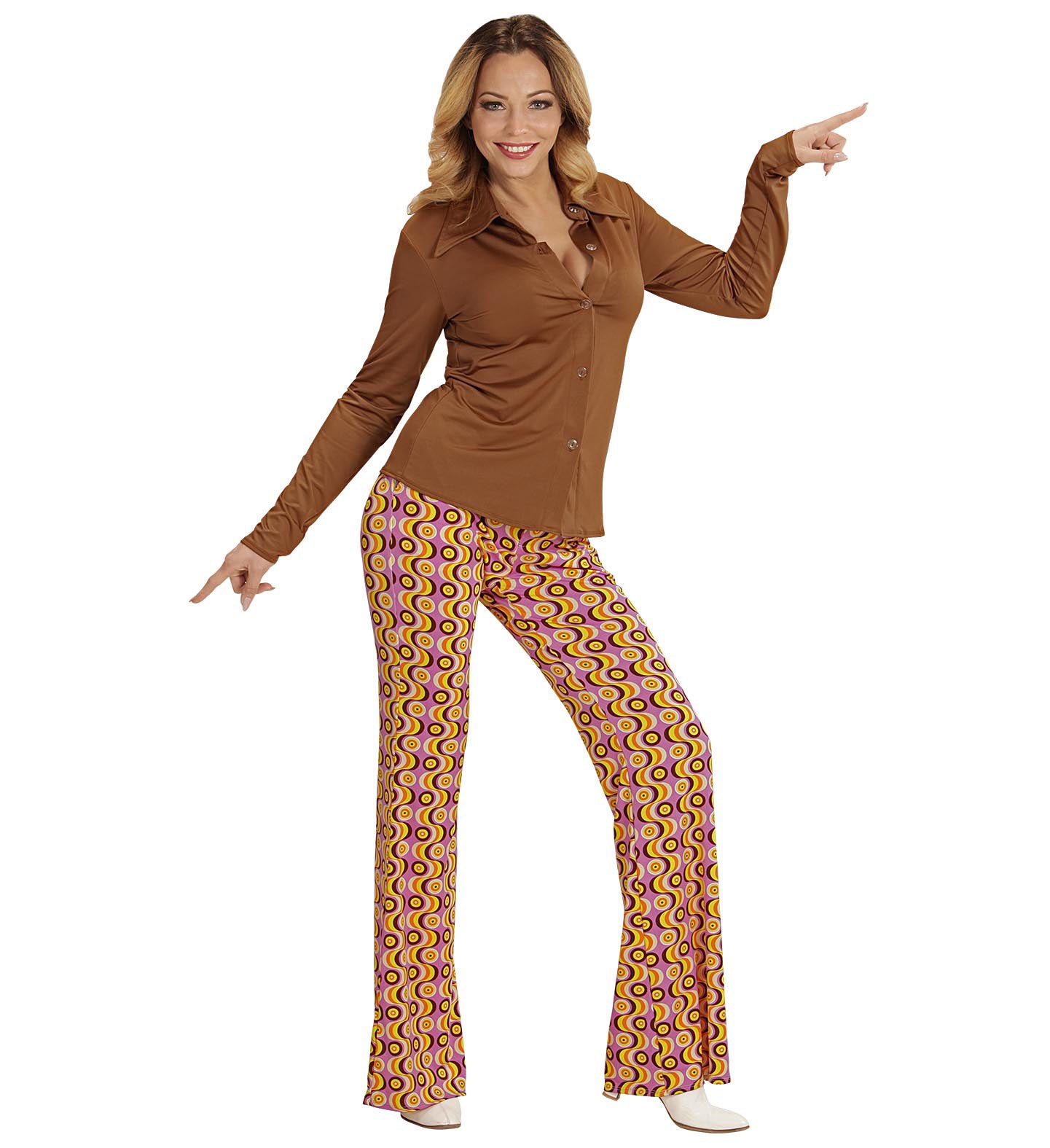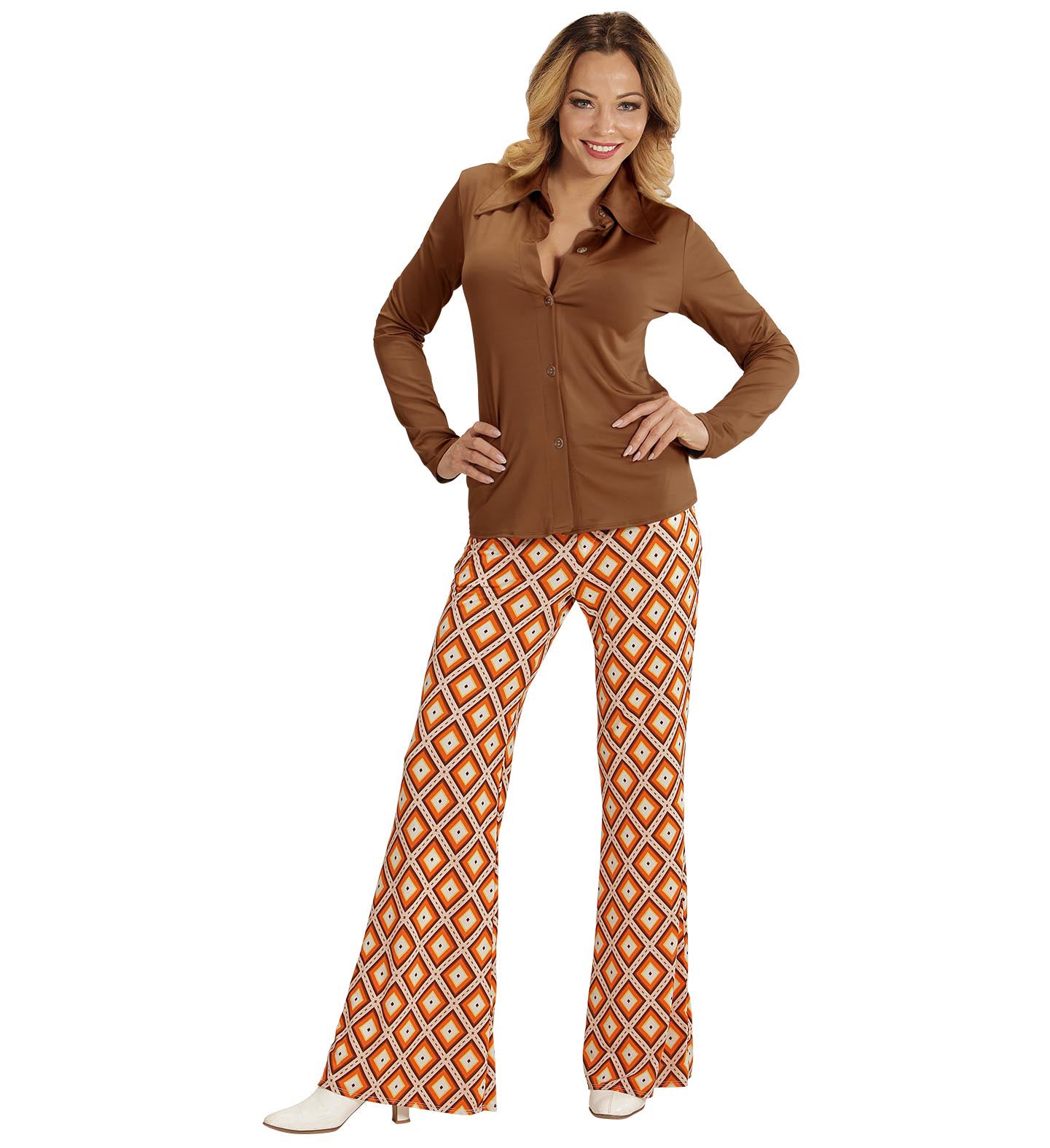 Jaren 70 discoshirt Groovy bruin