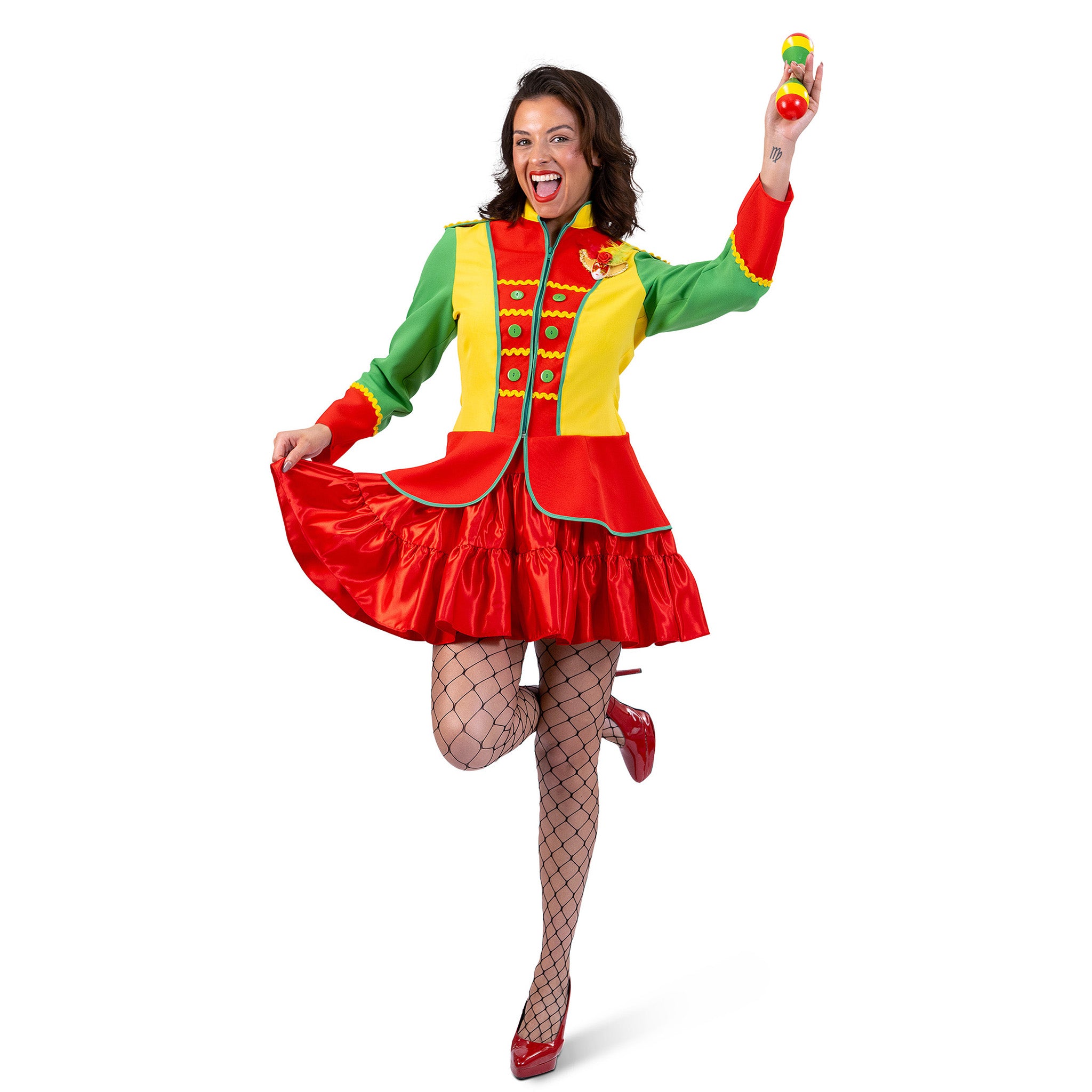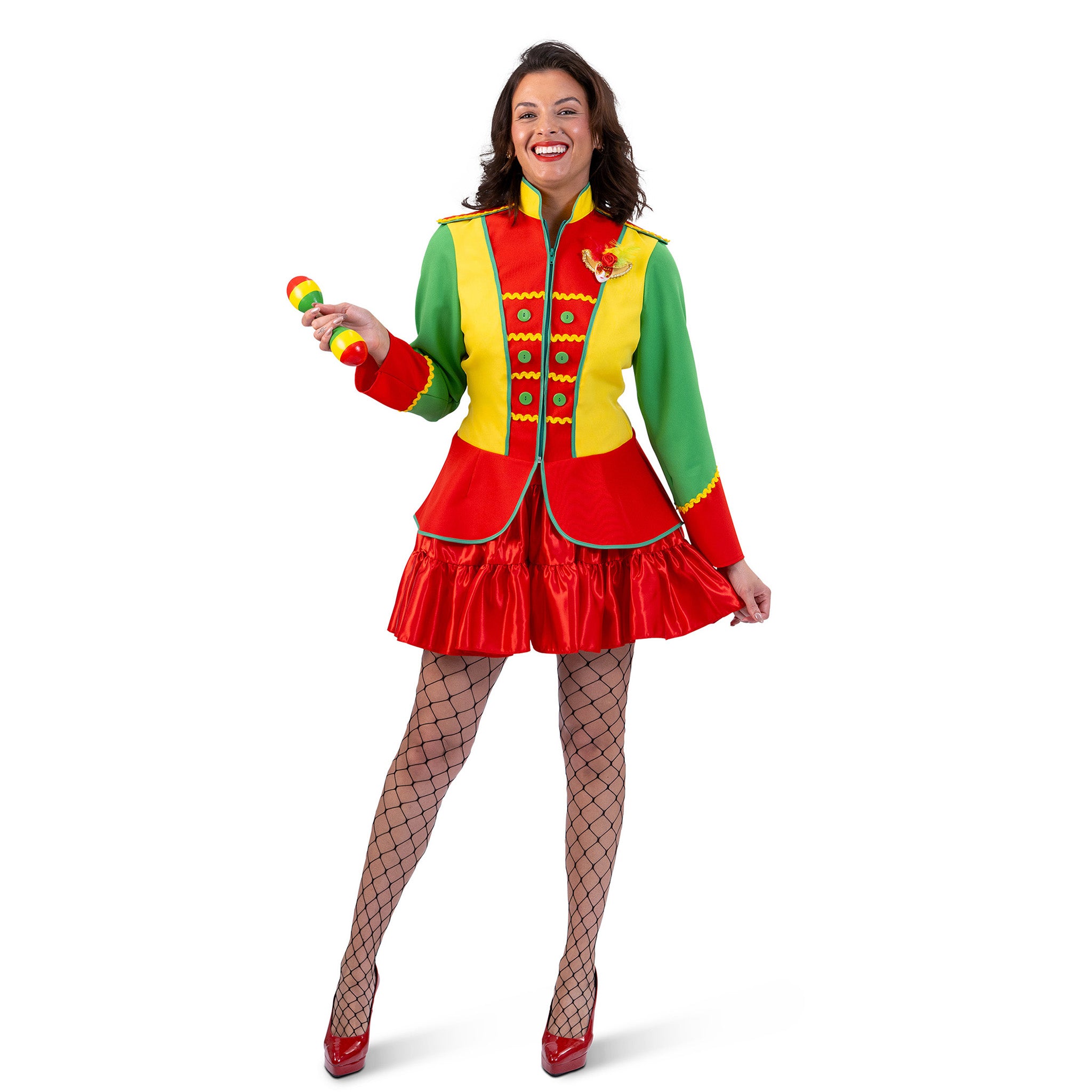 Jas carnaval rood, geel groen dames