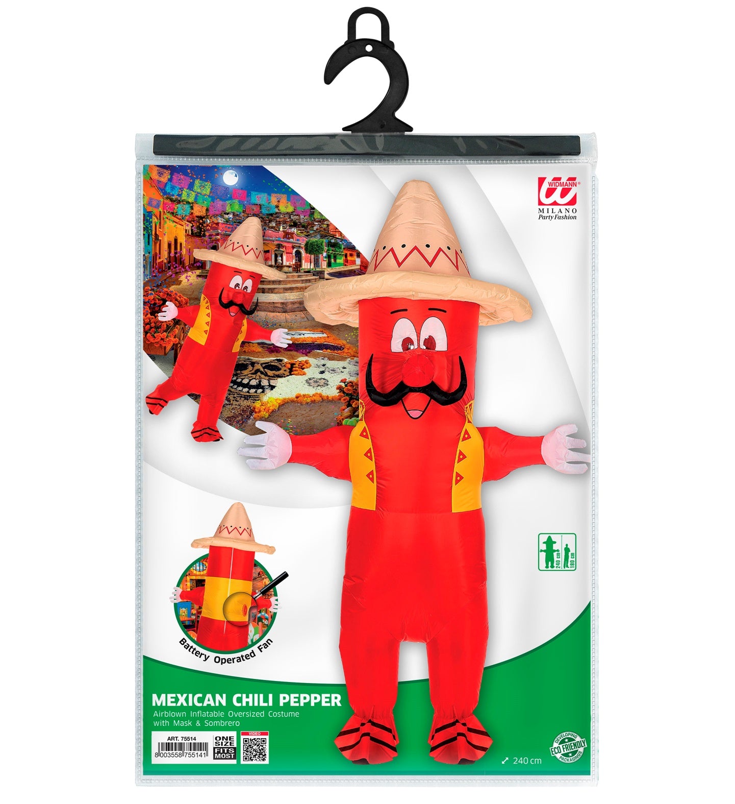 Leuk opblaasbaar kostuum Chili Peper in one size fits most voor de maten M/L omvat het kostuum, masker en sombrero.... En savoir plus