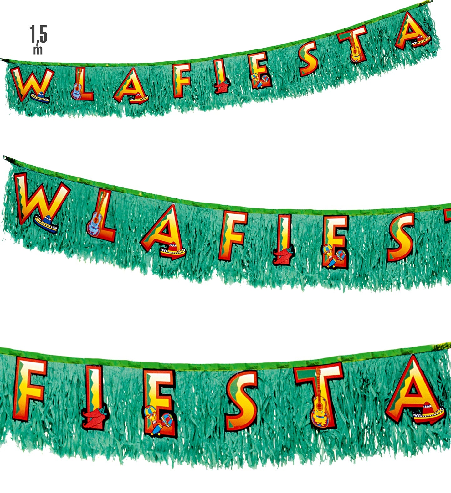 Decoratieve Mexicaanse Fiësta slingers Deze Mexicaanse fiësta feestslingers voor aan de muur en plafond zijn leuk om je feestzaal mooi... En savoir plus