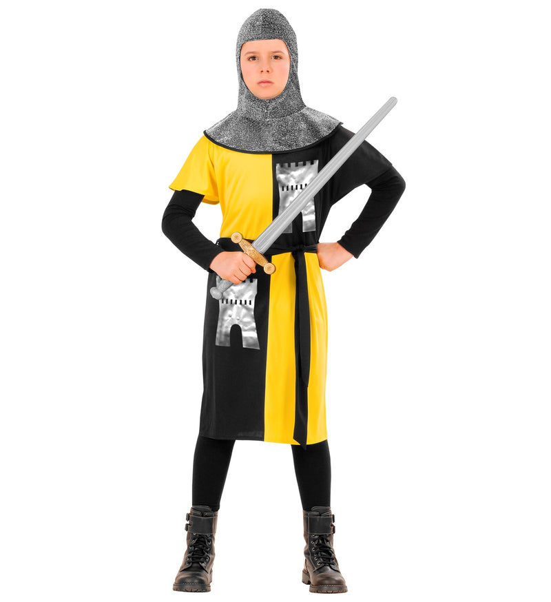 Word de held van het feest met dit stoere ridderpak in geel en zwart! Perfect voor avontuurlijke kinderen die graag de draak willen verslaan.