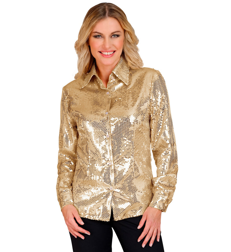 Gouden blouse pailletten dames