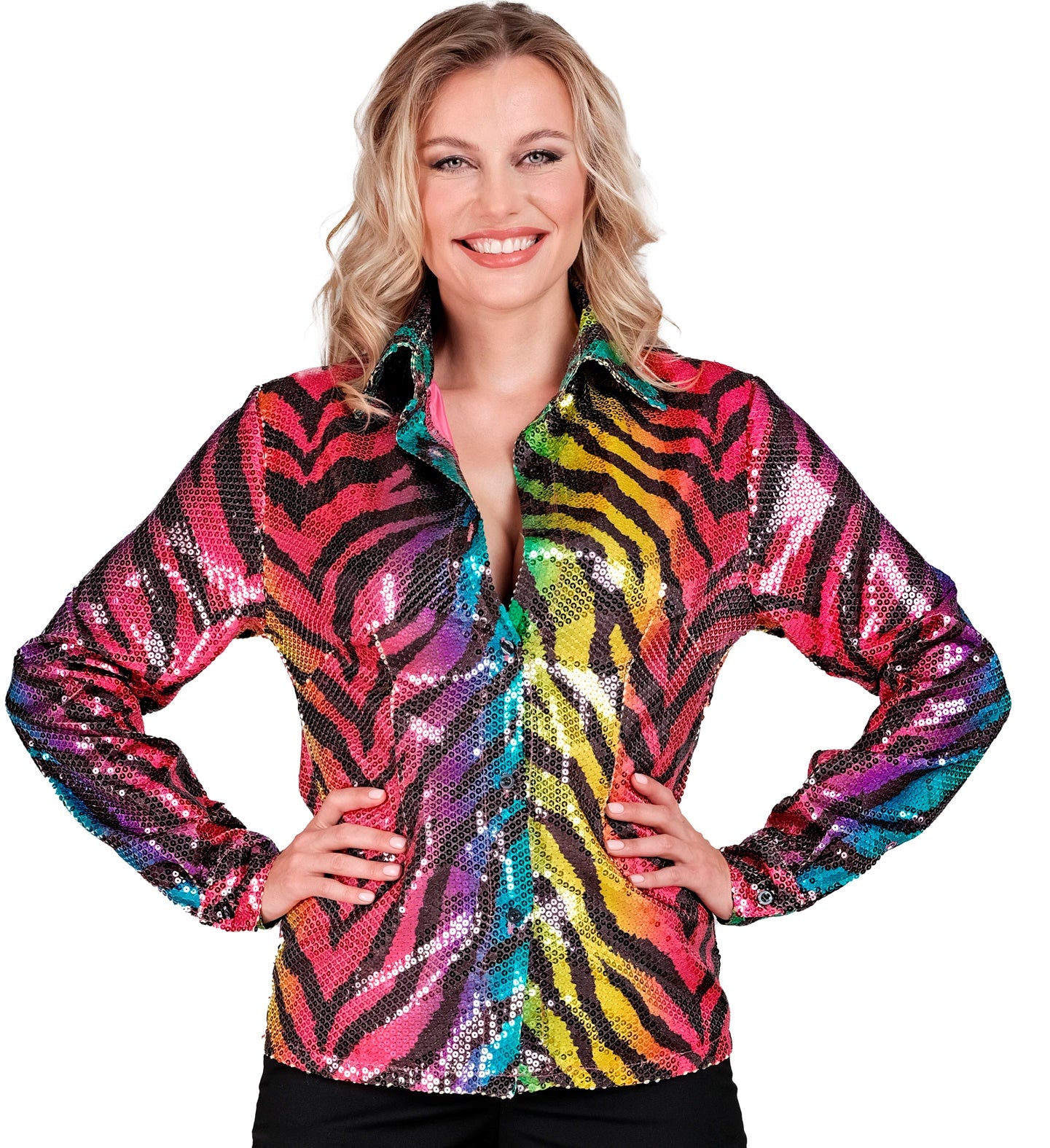 Schitter op elk feest met het Paillettenshirt dames regenboog tijger! Dit sprankelende shirt trekt alle ogen naar je toe en... En savoir plus