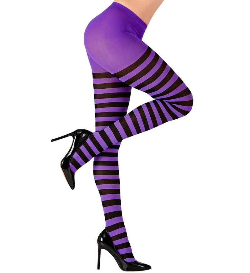 Paars met zwart gestreepte panty voor dames. Mooie paars met zwart gestreepte panty voor dames. Erg leuk voor bij een... En savoir plus