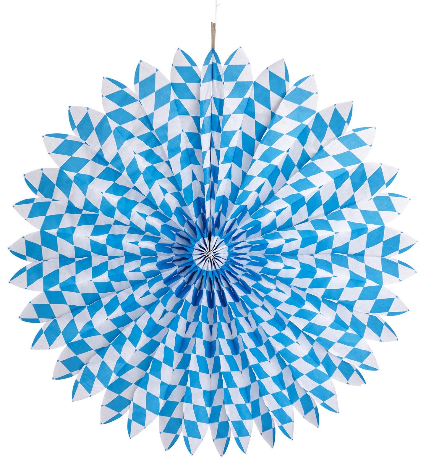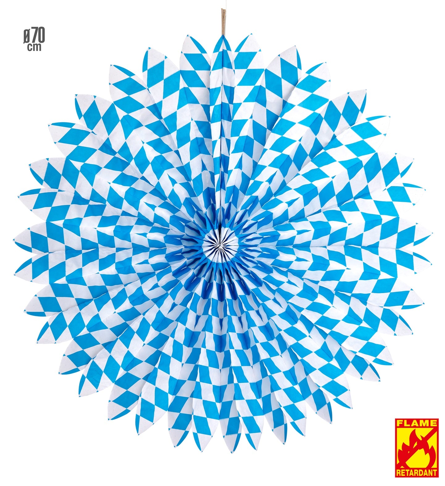 Maak je feestje compleet met deze papieren waaier in wit en blauw! Perfect voor elke gelegenheid, van verjaardagen tot themafeesten.... En savoir plus