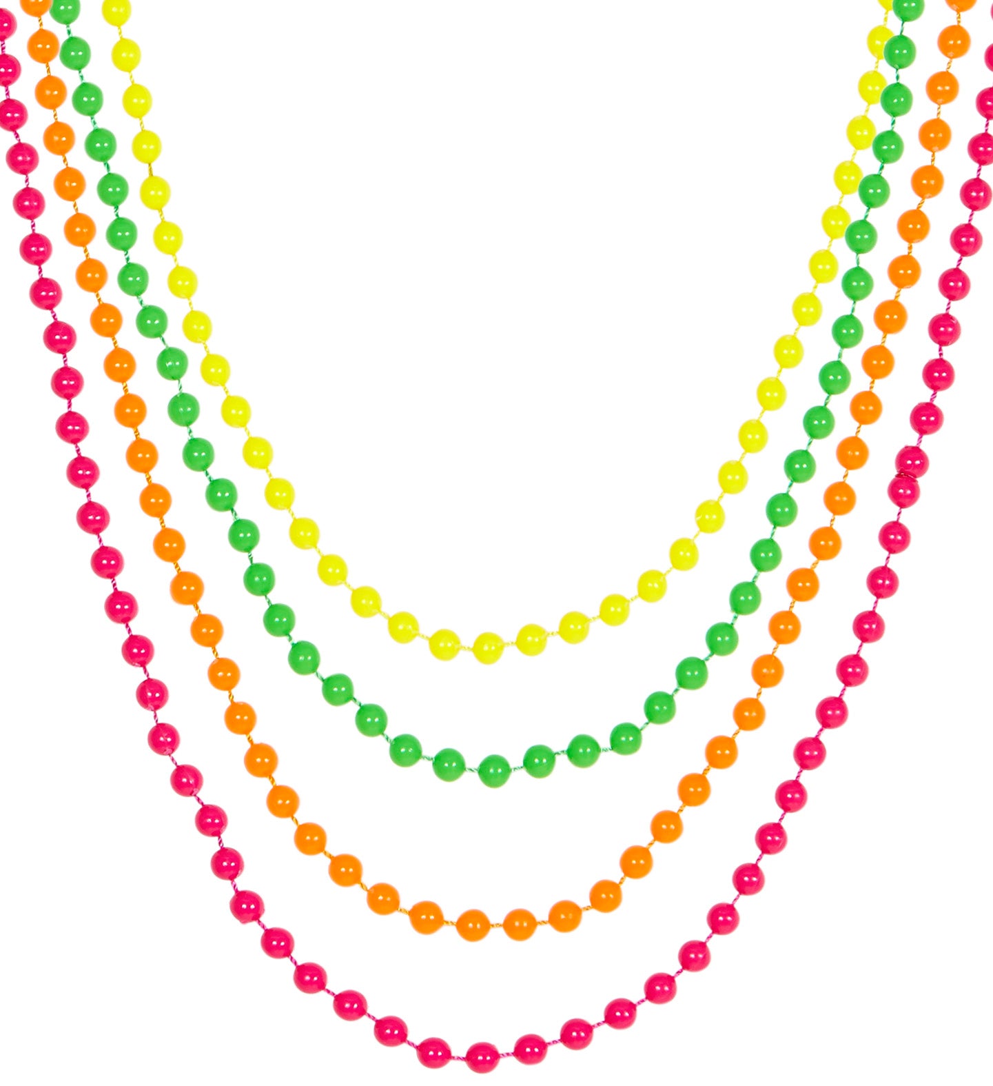 Maak je discooutfit compleet met deze gekleurde parelkettingen in neon! Deze halskettingen met vier neon kleurige parels zijn een absolute... En savoir plus