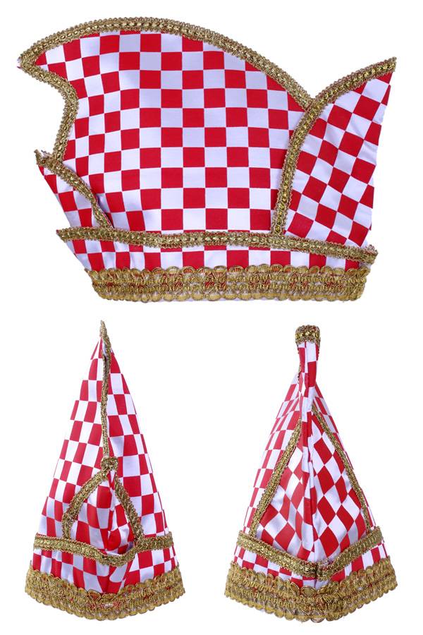 Prinsenmuts rood/wit geblokt goud galon
