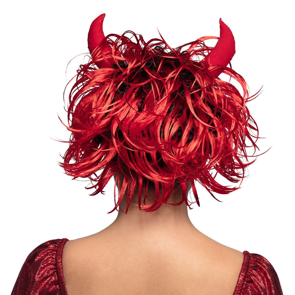 Duivel pruik Curly met hoorns