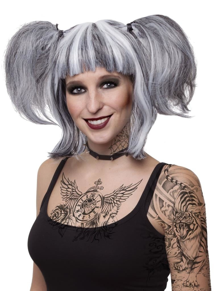 Pruik Gotische heks grijs Manga