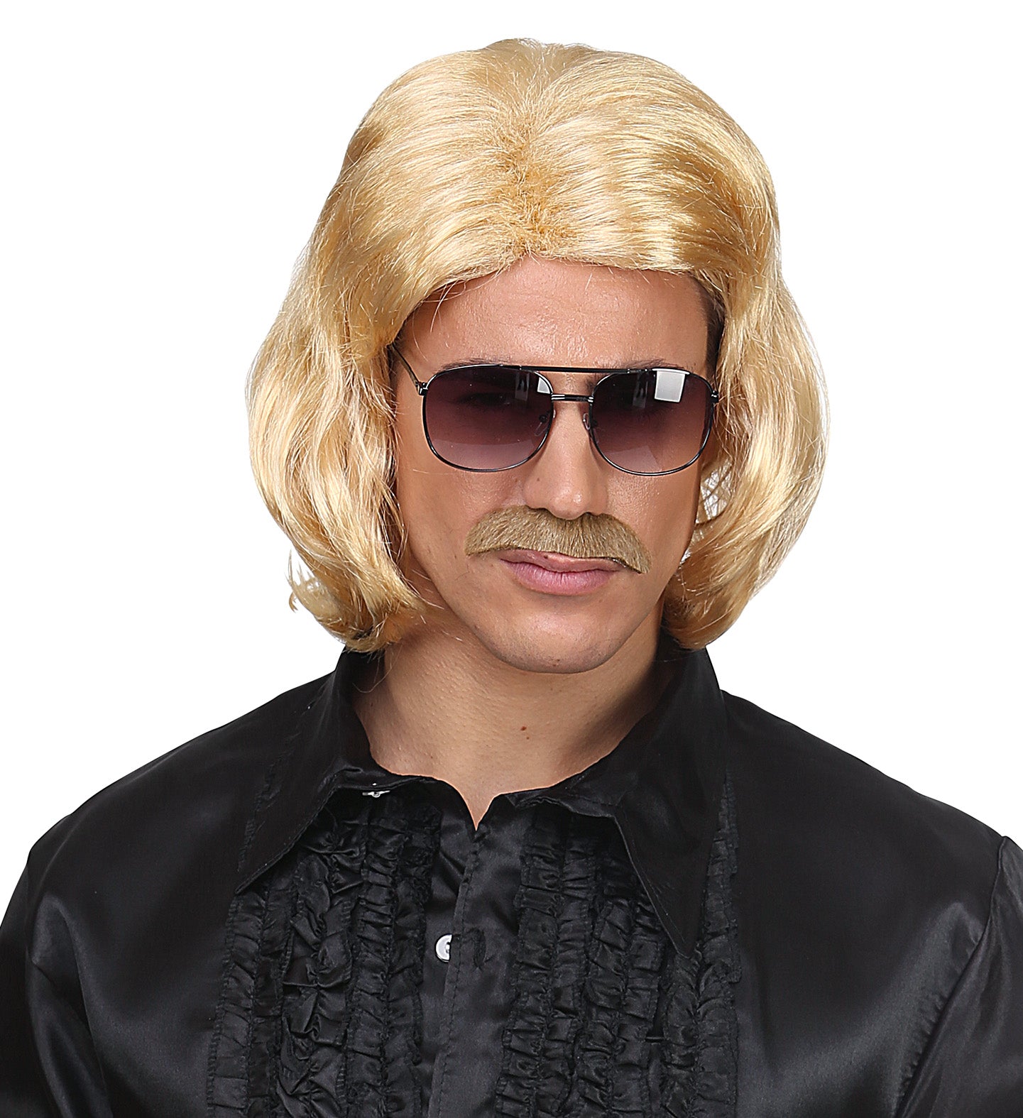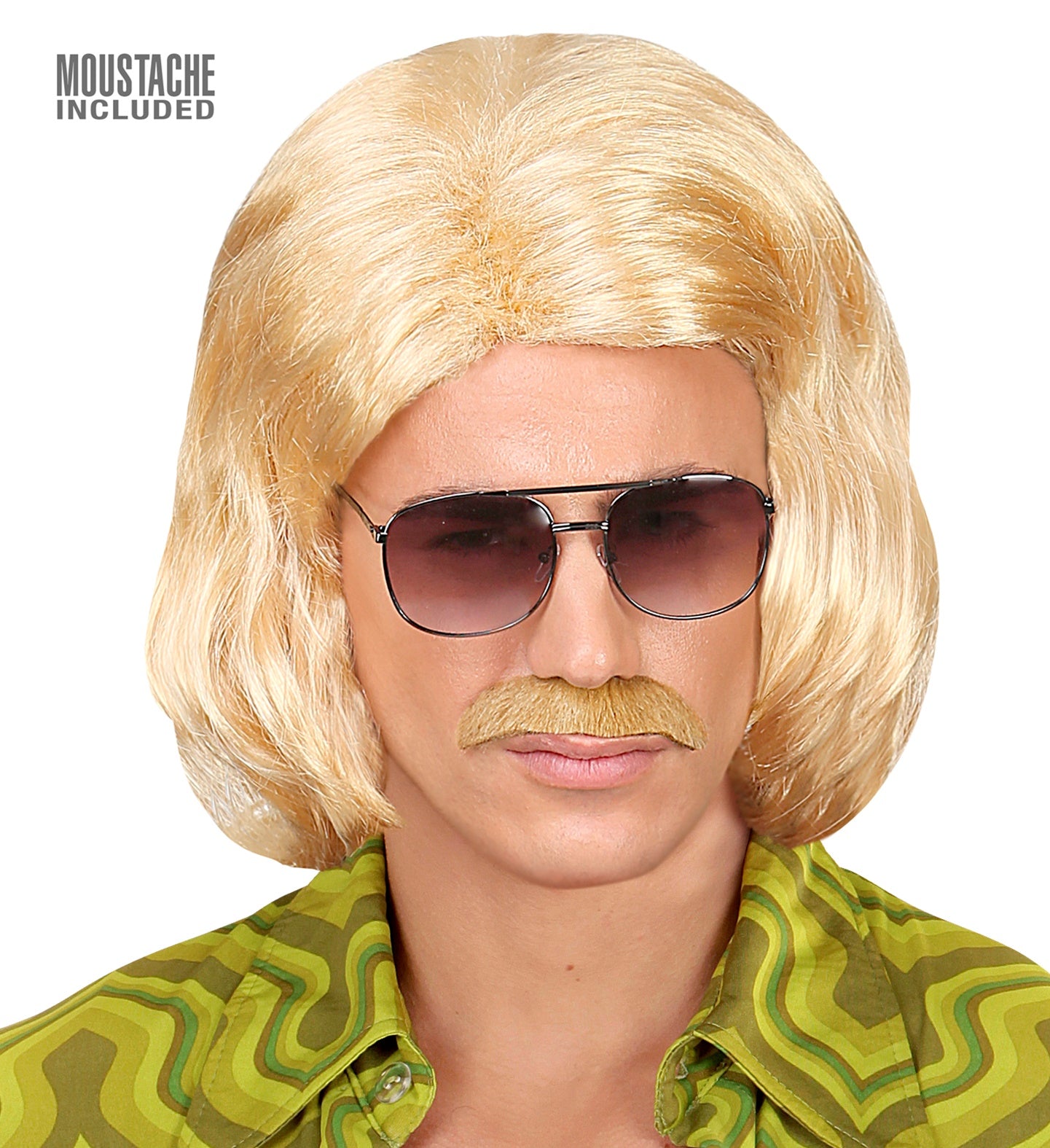 Blonde macho pruik met snor