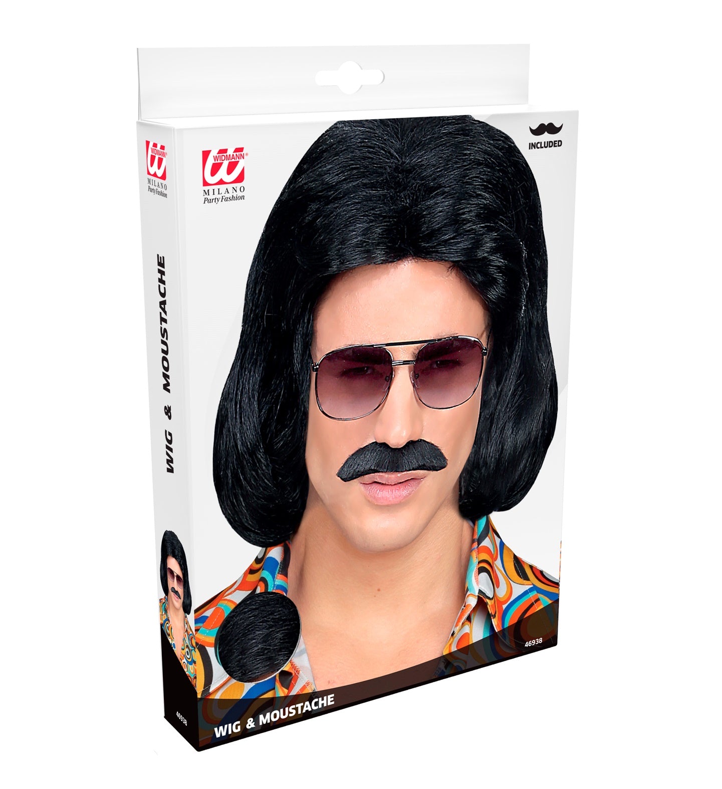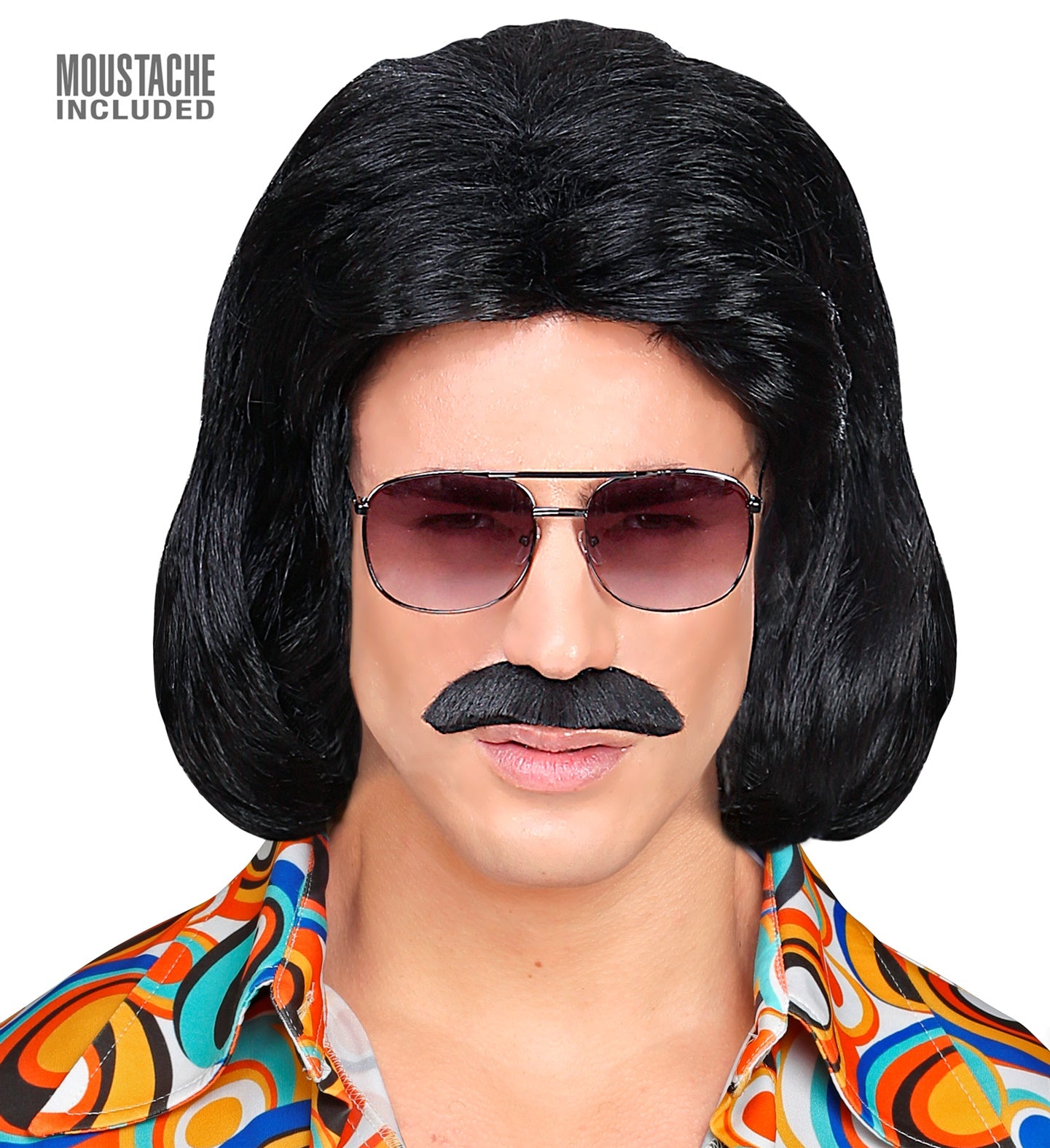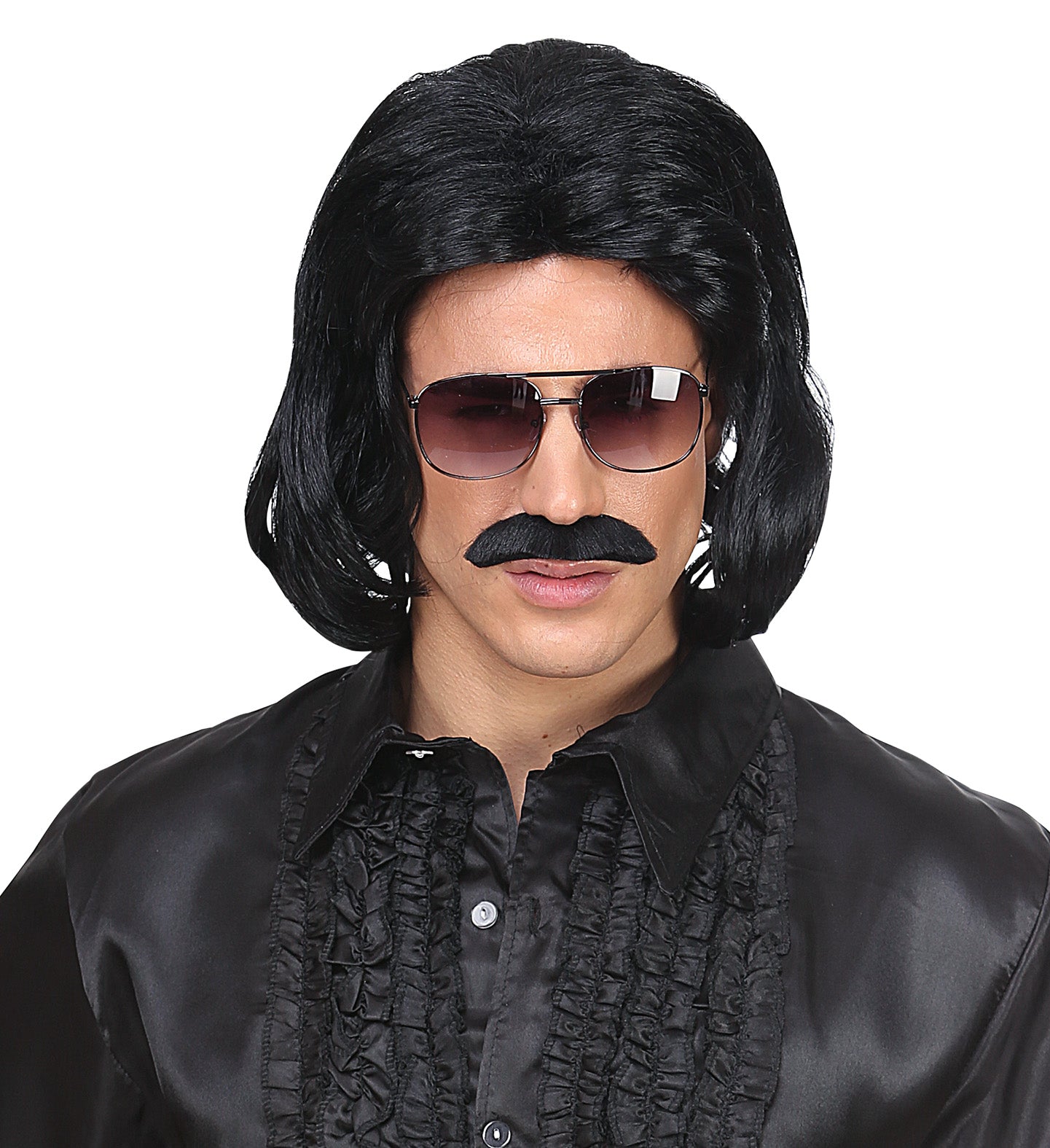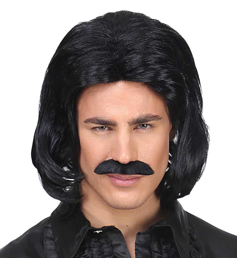Zwarte macho pruik met snor