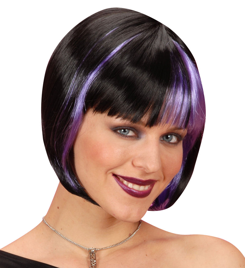 Bob pruik zwart met paarse highlights